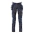 Många inlägg av elastiskt material som ger en unik rörelsefrihet. Den låga skärningen med formskuren linning ser till att byxorna följer och stöder alla kroppens rörelser. Ergonomiskt formade byxben är tillverkade efter kroppens naturliga rörelser. Hängfickor i slitstark CORDURA®. Knäfickorna i slitstarkt CORDURA® är reglerbara, så att knäskydden får den optimala placeringen. Som standard i tre olika benlängder så kan du välja den bästa passformen och den optimala placeringen av detaljer just för dig. Tyget tål industritvätt. Samcertifierade för användning med MASCOT:s knäskyddstyp SHORT eller LONG, eftersom knäskyddsfickan kan höjdjusteras.