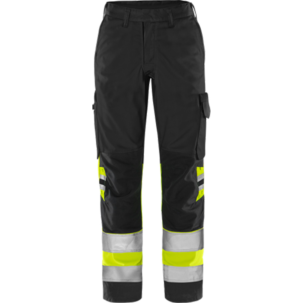 Varselbyxa Green 2652 GPLU klass 1, dam. Återvunnen polyester och ekologisk bomull / Miljödeklarerad (EPD) / Ribbstickade stretchpartier i midjan / Dold knapp fram / 2 framfickor / 2 bakfickor / Dubbel förstärkt grensöm / Hammarhank / CORDURA®-förstärkt tumstocksficka med verktygsficka, pennficka samt knapp och hälla för kniv / Benficka med tryckknapp, ficka med lock och kardborrelås samt D-ring / Knäfickor i CORDURA® med öppning inifrån / Knäskydden i knäfickorna kan höjdjusteras / CORDURA®-förstärkning i benslut / Benlängden kan förlängas 5 cm eller förkortas 3 cm / Godkänd enligt EN ISO 20471 klass 1, EN 14404 tillsammans med knäskydd 124292 och EN 13758-2 UPF 40+ UV-skydd / Godkänd efter 50 tvättar / Testad för industritvätt enligt ISO 15797 / EPD reg.nr 3881 på environdec.com / OEKO-TEX®-certifierad.