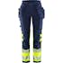 Varsel Green hantverkarbyxa stretch 2663 GSTP klass 1, dam. Delvis biobaserat och återvunnet material / Miljödeklarerad (EPD) / 4-vägs stretchmaterial / Ribbstickade stretchpartier i midjan / Slitstarkt ripstop-material med 4-vägsstretch på stuss och baksida lår / Dold knapp fram / 2 löst hängande CORDURA®-förstärkta spikfickor – den ena med ficka med dragkedja, 3 mindre fickor och verktygshällor, den andra med extra ficka / D-ring under spikfickan / 2 framfickor / 2 bakfickor med lös botten, varav en med dragkedja / Dubbel förstärkt grensöm / Hammarhank / CORDURA®-förstärkt tumstocksficka med verktygsficka, pennficka samt knapp och hälla för kniv / Benficka med tryckknapp, ficka med dragkedja och D-ring / Knäfickor i CORDURA® med öppning inifrån / Knäskydden i knäfickorna kan höjdjusteras / CORDURA®-förstärkt benslut / Dold kängkrok / Godkänd enligt EN ISO 20471 klass 1, EN 14404 tillsammans med knäskydd 124292 och EN 13758-2 UPF 40+ UV-skydd / Godkänd efter 50 tvättar / EPD reg.nr 4489 på environdec.com / OEKO-TEX®-certifierad.
