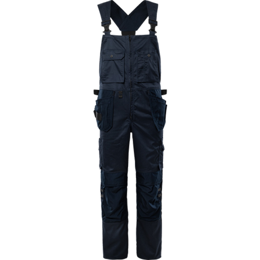 Hängslebyxa hantverk 41 GS25. Delvis återvunnet material / Mekanisk stretch / Reglerbara hängslen med resår bak / 2 löst hängande bröstfickor som kan knäppas fast, varav en med pennficka / 2 löst hängande spikfickor helt i CORDURA®, den ena med 3 mindre fickor och verktygshällor, den andra med extra ficka / 2 framfickor / 2 rymliga CORDURA®-förstärkta bakfickor / Hälla för id-kort eller nycklar fram / Dubbel förstärkt grensöm / Hammarhank på båda sidorna / Höger benficka med tumstocksficka, pennficka samt knapp och hälla för kniv / Vänster benficka med tryckknapp, telefonficka och extra ficka med hälla för id-kortshållare / Knäfickor i CORDURA® med öppning utifrån, uppifrån / Knäskydden i knäfickorna kan höjdjusteras / CORDURA®-förstärkta benslut / Reflexdetaljer vid knä / Godkänd enligt EN 14404 tillsammans med knäskydd 124292 / OEKO-TEX®-certifierad.