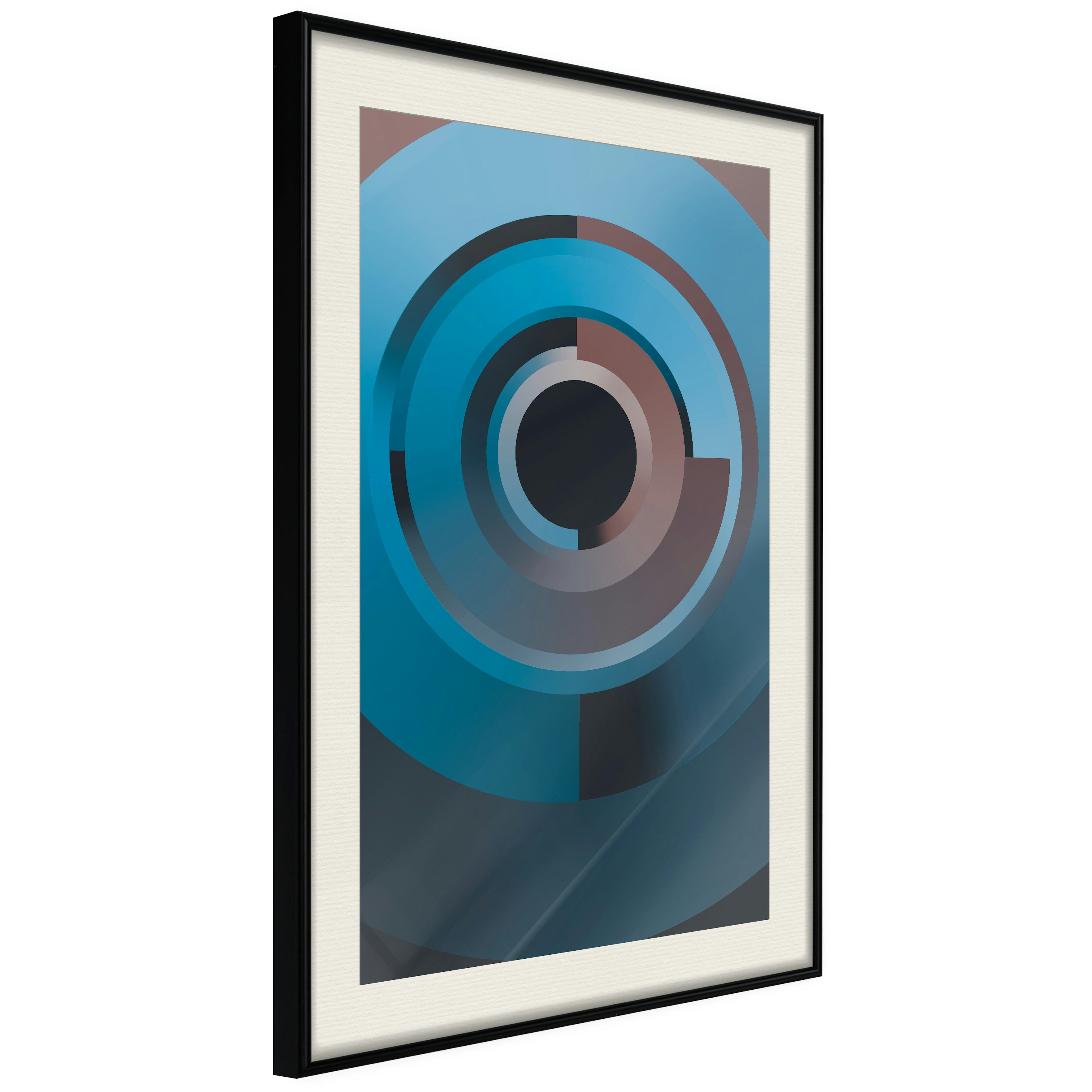 Passepartouten i écru betonar färgern på affischen och skapar en extra kontrast mellan grafiken, ramen och väggen. Dessutom ger den ramen ett svagt tredimensionellt intryck och fungerar även som ett skyddslager som ytterligare skyddar afischen. Affischen är säkrad med akrylglas och en hänganordning finns på ramens baksida.