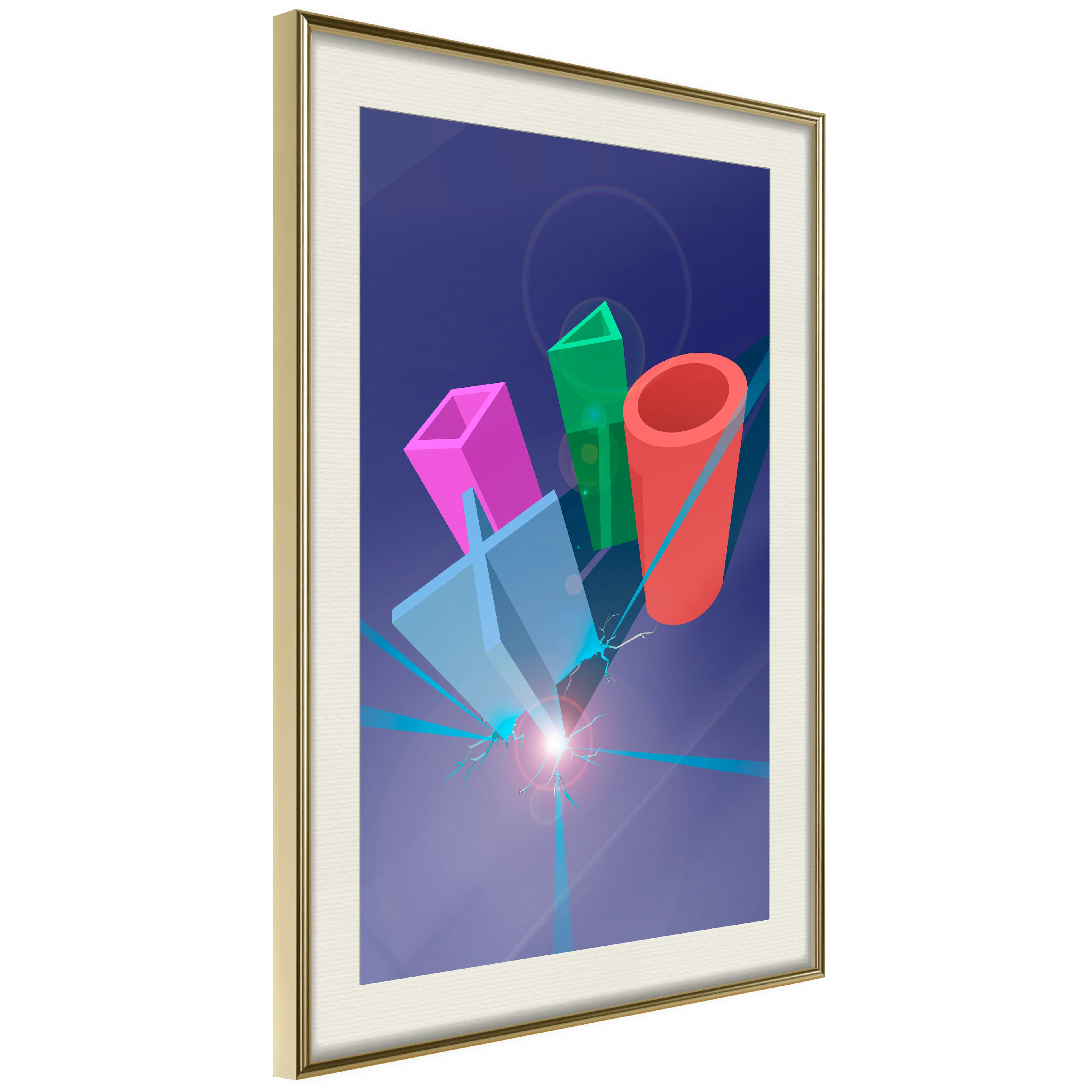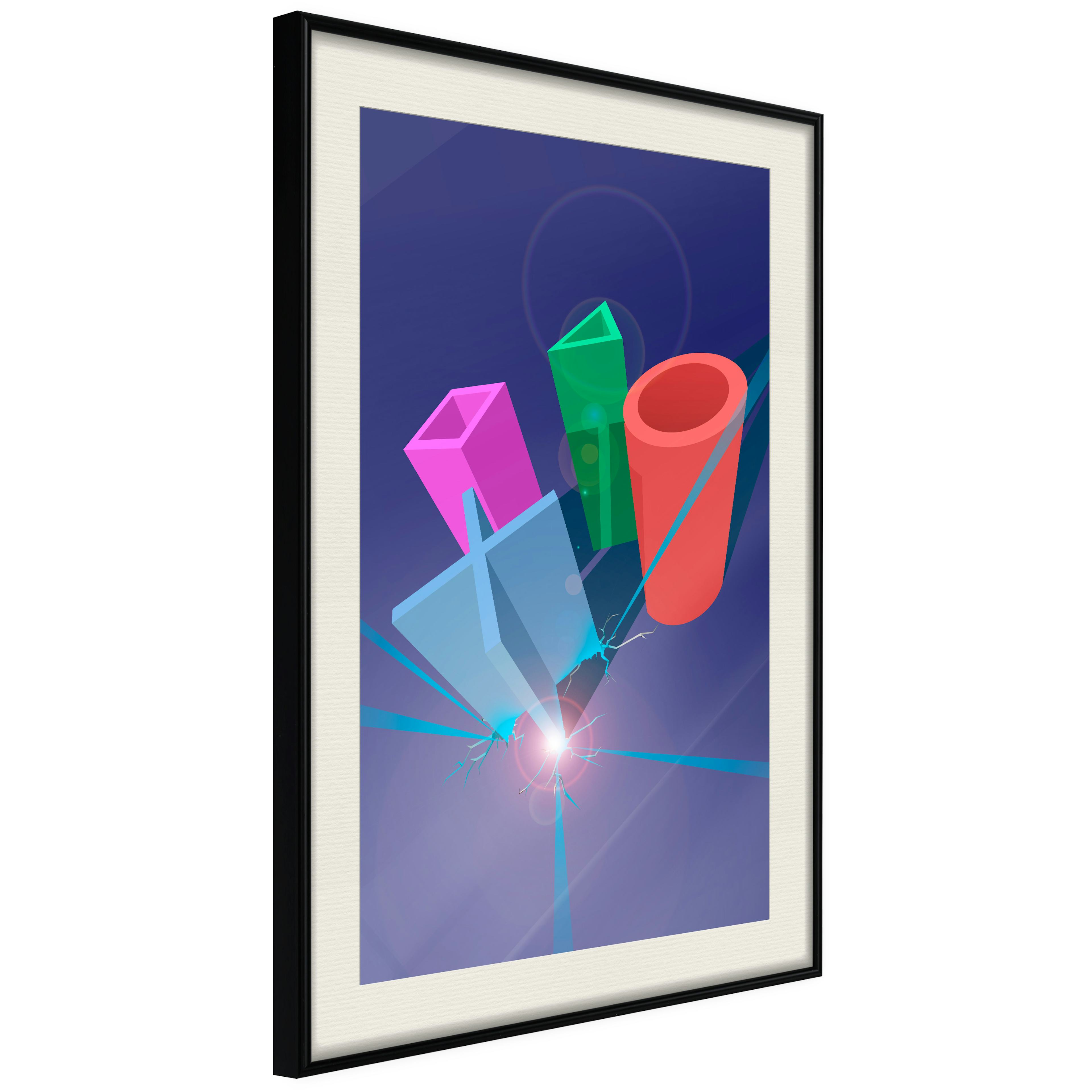 Passepartouten i écru betonar färgern på affischen och skapar en extra kontrast mellan grafiken, ramen och väggen. Dessutom ger den ramen ett svagt tredimensionellt intryck och fungerar även som ett skyddslager som ytterligare skyddar afischen. Affischen är säkrad med akrylglas och en hänganordning finns på ramens baksida.