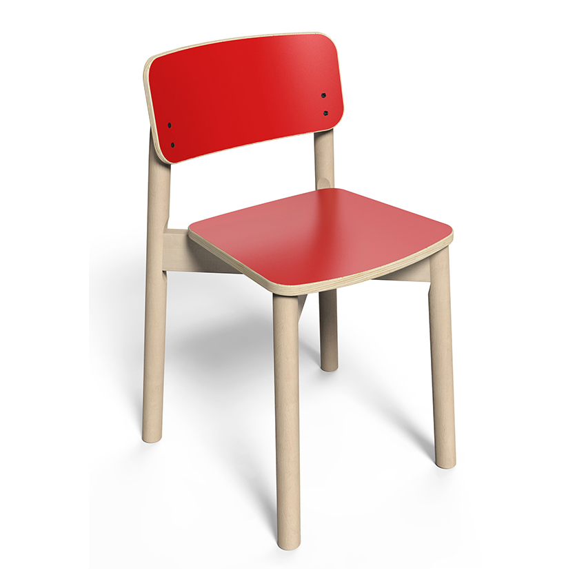 Barnstol Fanny från ABA Skol. Stomme i trä med sits- och ryggplatta i laminat. Godkänd enligt gällande EN-standard. Stapelbar. Filttassar medföljer. Fotstöd kan köpas separat.