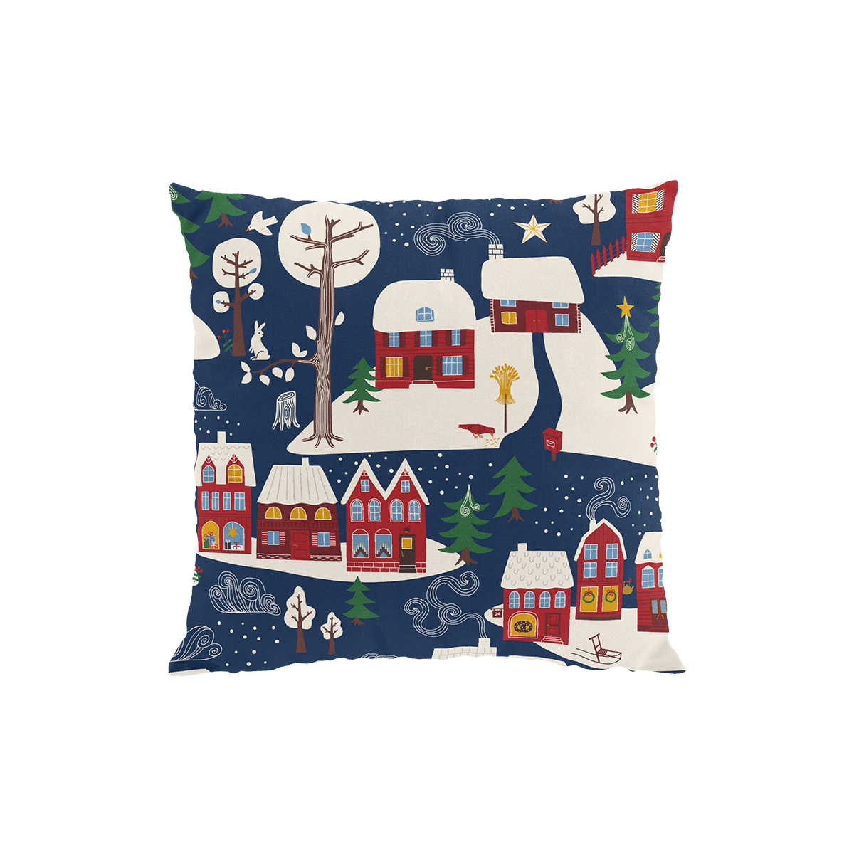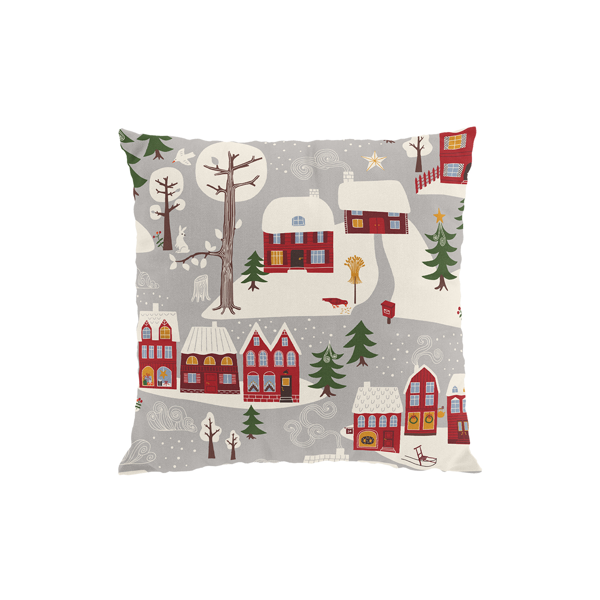 Kuddfodral Arvidssons Textil Vintertid är ett vackert kuddfodral som sprider julstämning. Vintertid är ett klassiskt vinter och jultyg med gamla traditionella hus.