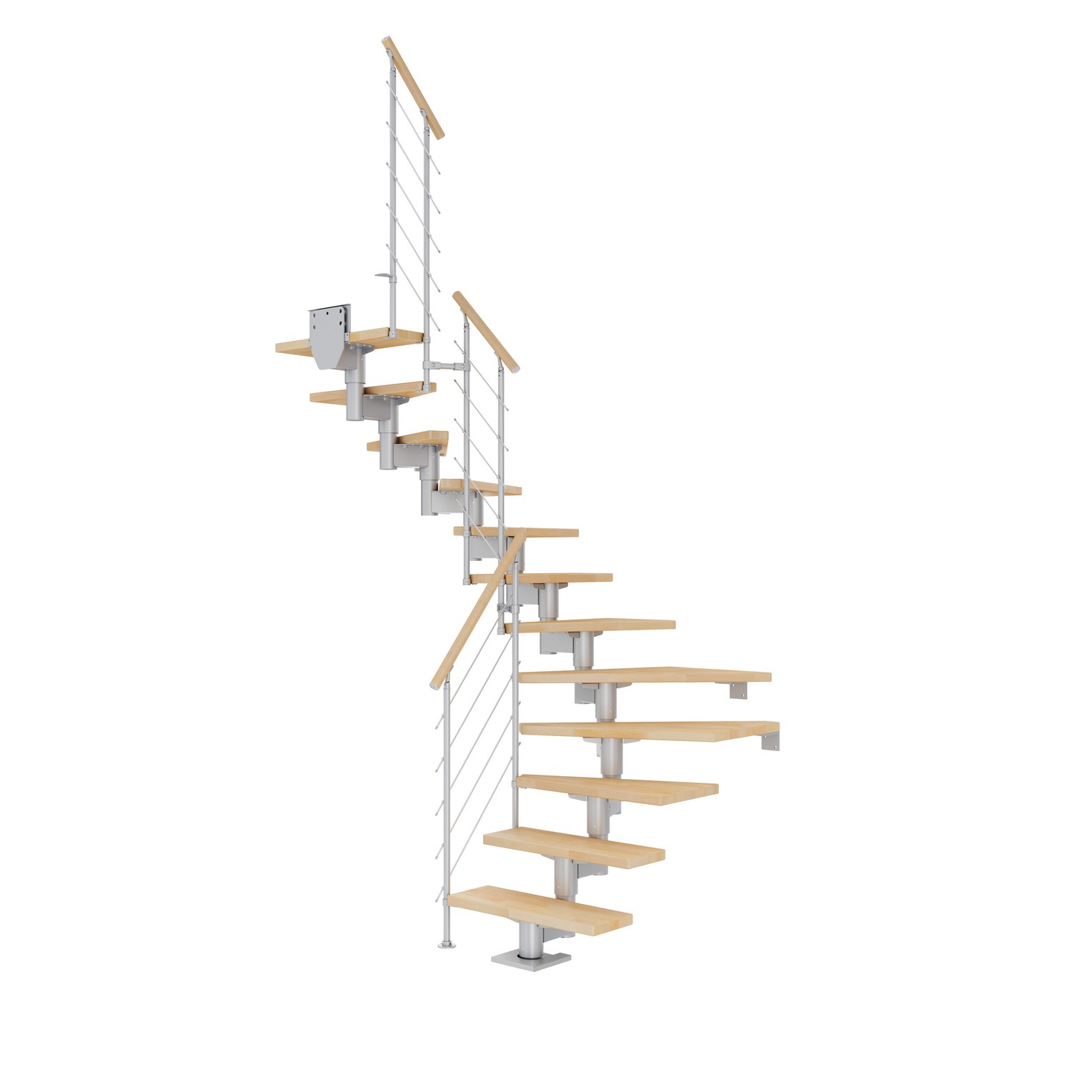 11-15 trappsteg i massivt trä ingår för CORK-trappor med en golv-till-golvhöjd på upp till 360 cm. När du installerar stegen med mer än 13 steg måste en stabiliserande stödstolpe installeras med. Detta ingår i paketet. För en lägre trappa tas överflödiga steg enkelt bort. Stegen har en hållbar och reptålig yta som är lätt att underhålla tack vare den halvblanka lacken. Höjden på varje steg kan ställas in mellan 18,5 och 22,5 cm.