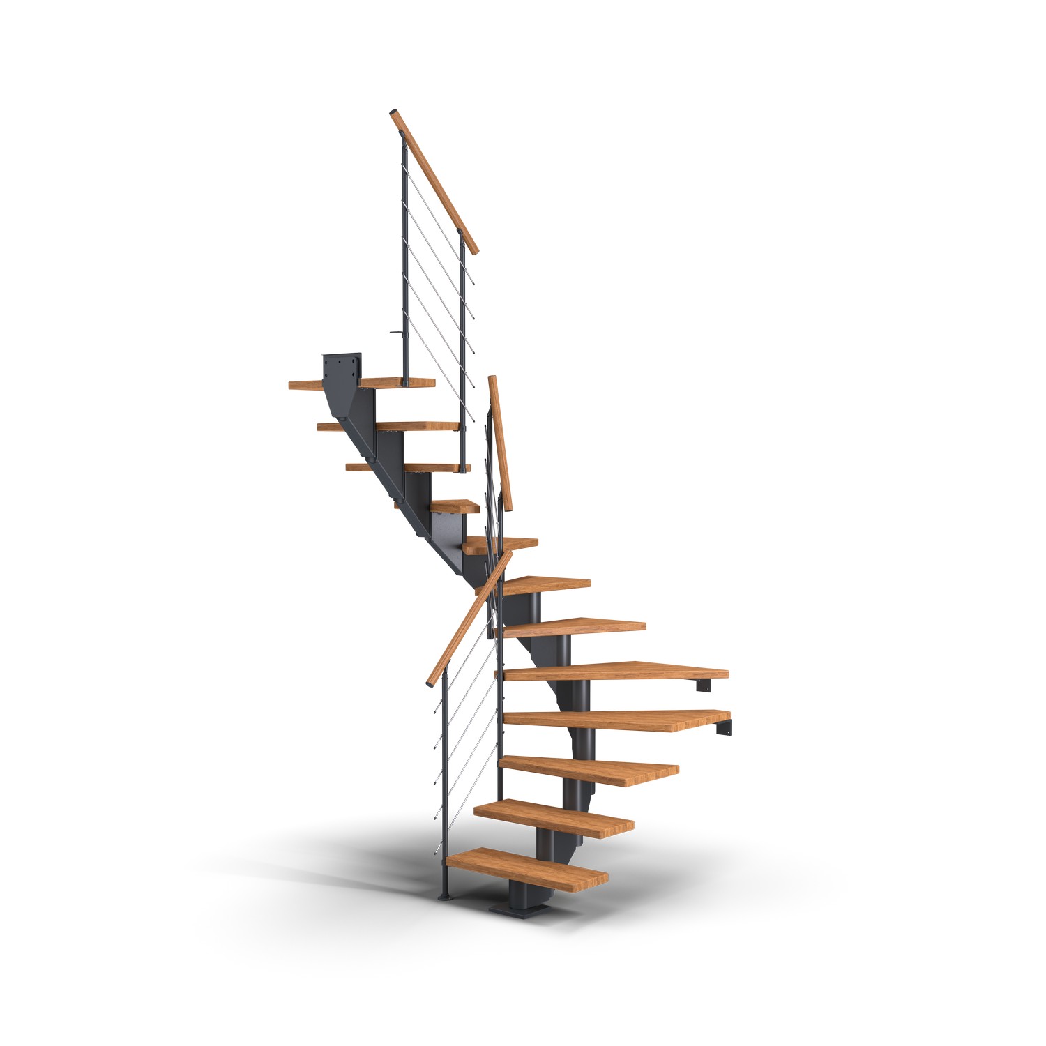 Skapa ett unikt intryck i ditt hem genom att anpassa trappformatet till rummets behov. Hamburg har upp till 14 steg som ger en maximal höjd från golv till golv på 322 cm. Varje steg har en justerbar höjd mellan 18,5 och 21,5 cm. Väggfästen ingår för att säkerställa hög stabilitet i trappan. Breda och djupa trappsteg i kombination med ett stabilt skyddsräcke gör trappan otroligt säker och bekväm att använda.