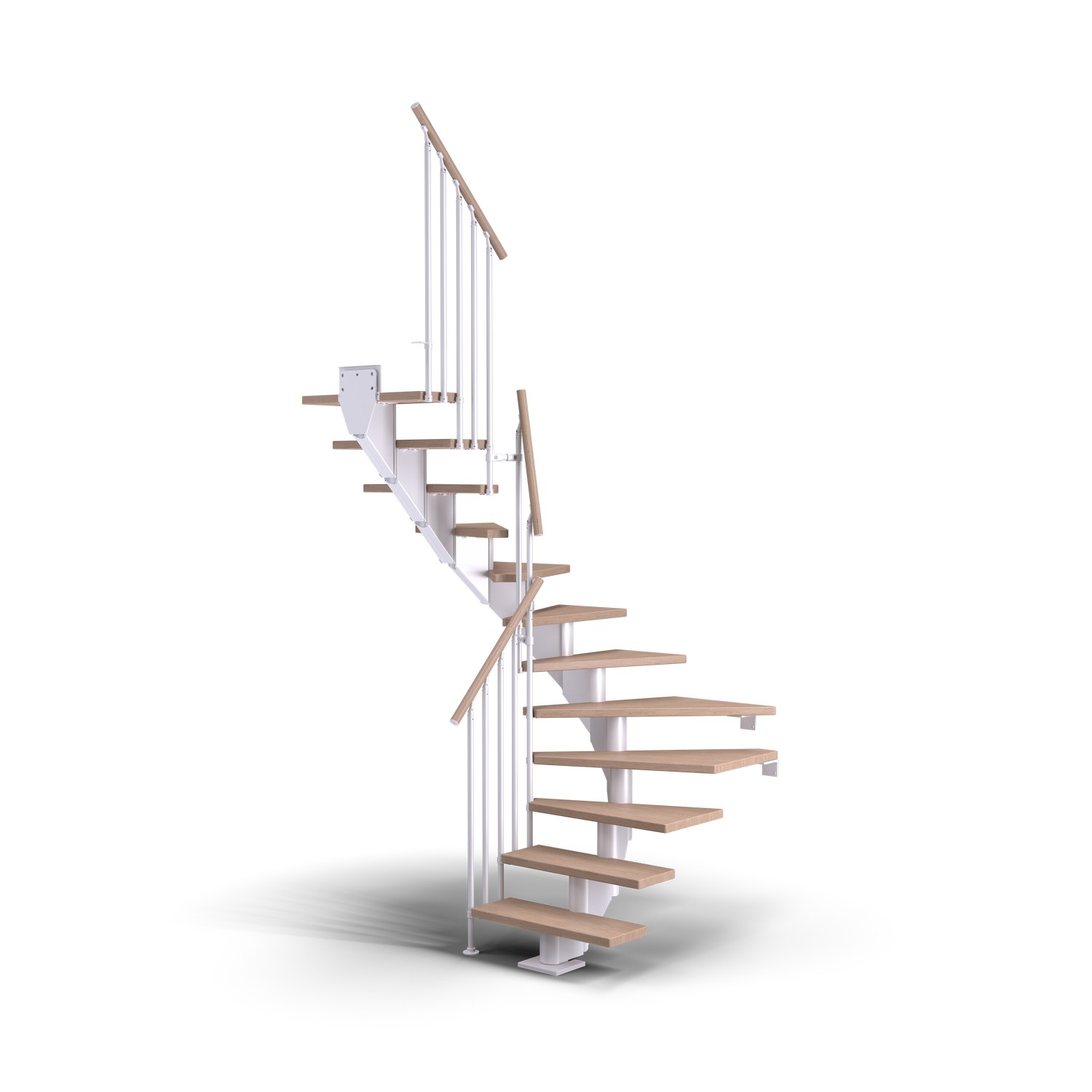 Skapa ett unikt intryck i ditt hem genom att anpassa trappformatet till rummets behov. Hamburg har upp till 14 steg som ger en maximal höjd från golv till golv på 322 cm. Varje steg har en justerbar höjd mellan 18,5 och 21,5 cm. Väggfästen ingår för att säkerställa hög stabilitet i trappan. Breda och djupa trappsteg i kombination med ett stabilt skyddsräcke gör trappan otroligt säker och bekväm att använda.