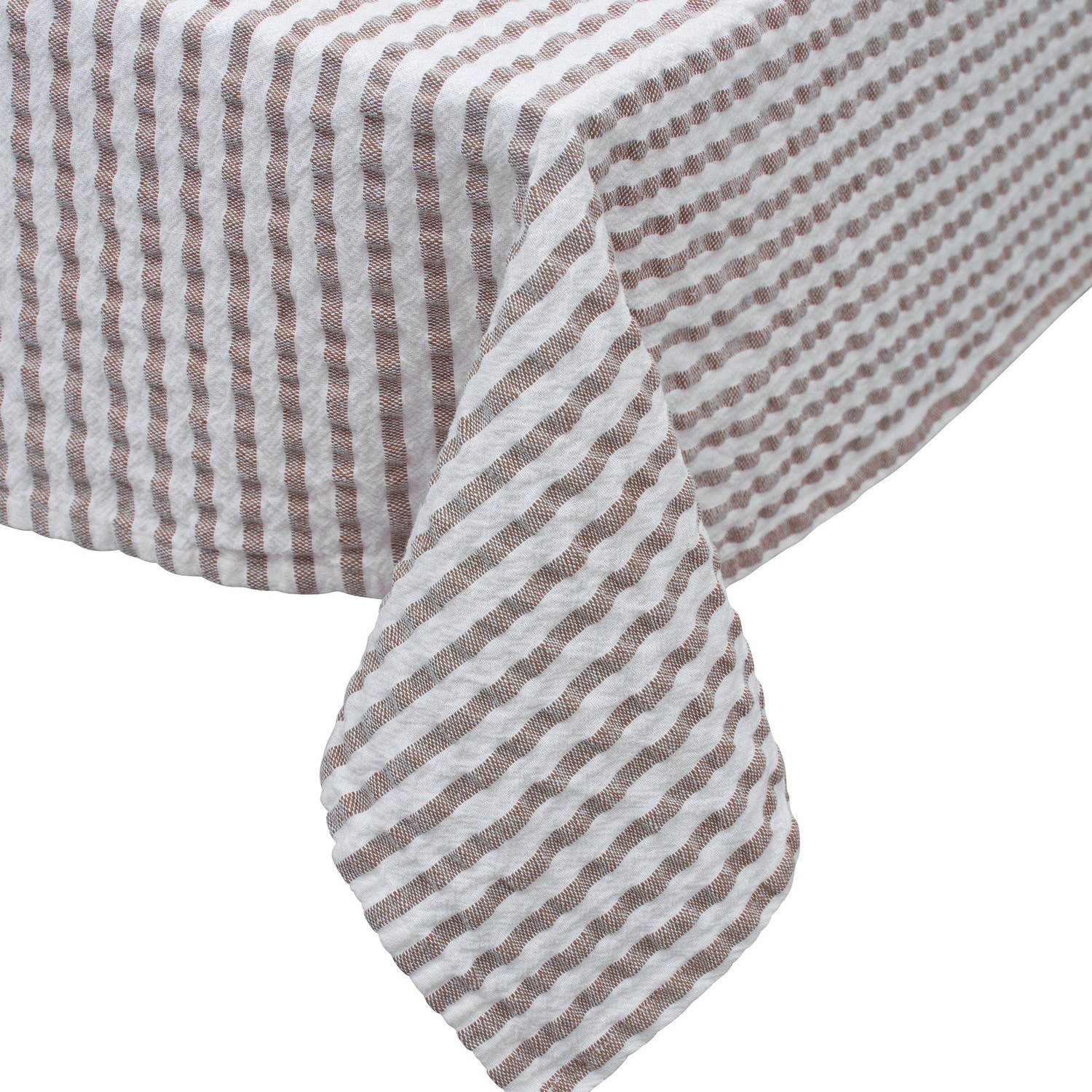 Bordsduk i mjuk bomullkvalitet, garnfärgad rand och lätt tvättad effekt. Mått 145x280cm. Duka gärna med matchande tygservetter och addera en bordsfilt under duken för en riktig lyxig dukning. Produkten är certifierad enligt STANDARD 100 by OEKO-TEX®. Certifieringen garanterar att produkten är testad och fri från ämnen som kan vara skadliga för hälsan och miljön.