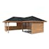 Tillverkad av nordisk gran med 120x120 mm starka limträstolpar och 19 mm takbrädor. Låsbara skjutdörrarna i 4 mm härdat glas och aluminium. 28 mm väggstockar.