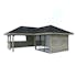 Byggsatsen levereras med alla nödvändiga delar och fästelement, vilket gör det enkelt att montera korrekt. Rymligt skydd under tak.