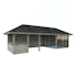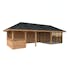 Tillverkad av nordisk gran med 120x120 mm starka limträstolpar och 19 mm takbrädor. Låsbara skjutdörrarna i 4 mm härdat glas och aluminium. 28 mm väggstockar.