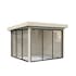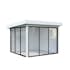 Tillverkad av nordisk gran med 120x120 mm starka limträstolpar och 19 mm takbrädor. Låsbara skjutdörrarna i 24 mm härdat dubbelglas (4 mm härdat glas - 16 mm luftspalt - 4 mm härdat glas) monterat i solida aluminiumprofiler. 28 mm väggstockar.