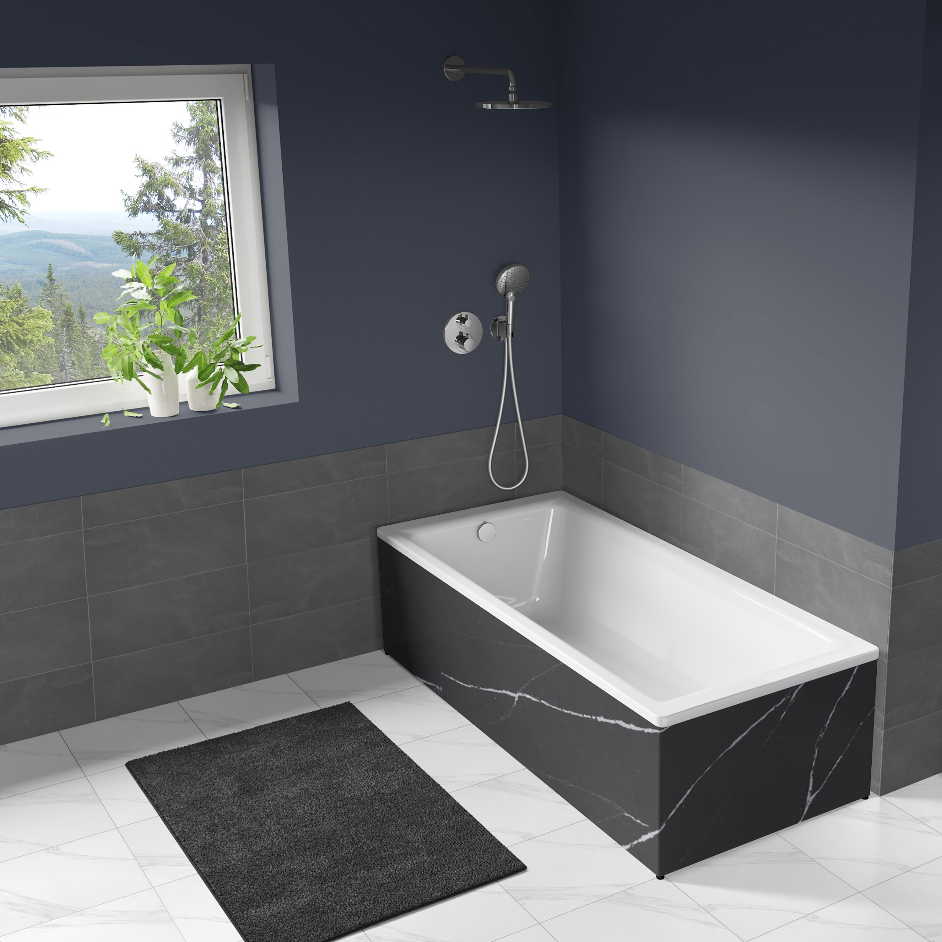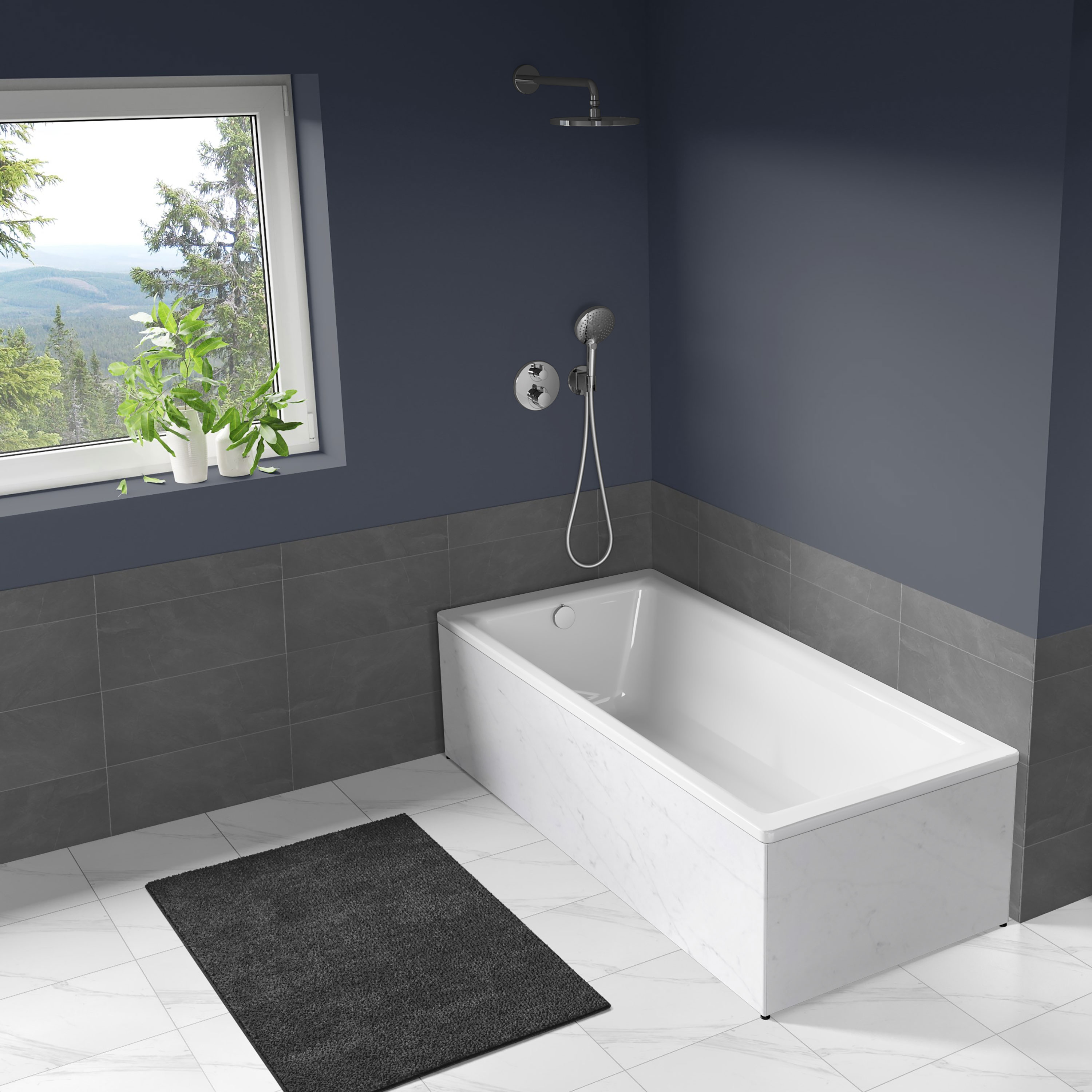 Badkar Langenfeld Puro är ett badkar i en modern och minimalistisk stil. Badkaret passar utmärkt för att både duscha och bada, då badkaret har en sluttande kortsida för att ligga emot och en rak kortsida för att komma närmare duschen. Långsidorna är rakare än traditionella badkar och skapar därför en större yta att både duscha och bada i.