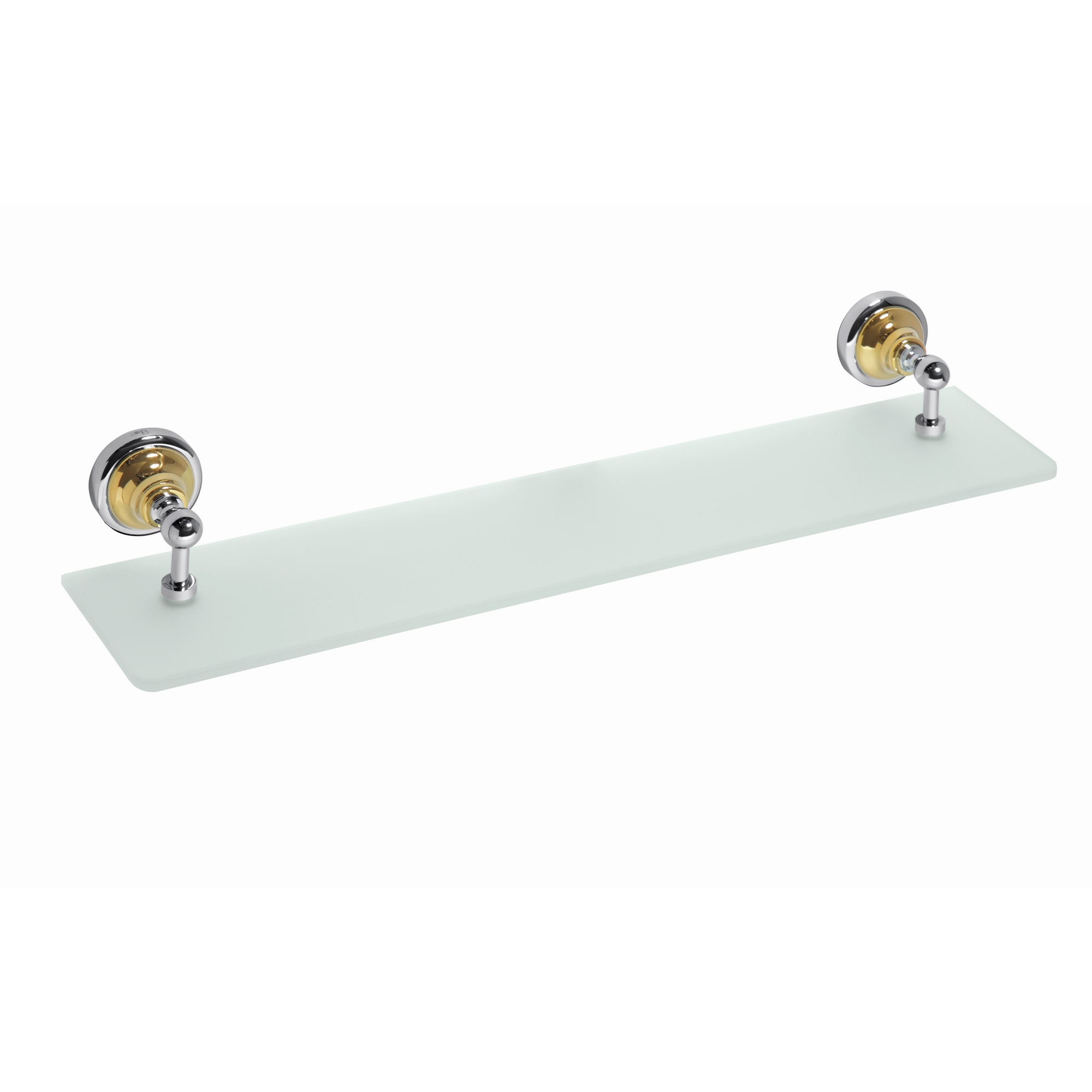 Badrumshylla Classic Glas från Duschbyggarna är en modern glashylla med metallbeslag i klassisk deisgn. Den skuvas eller limmas upp på väggen.
