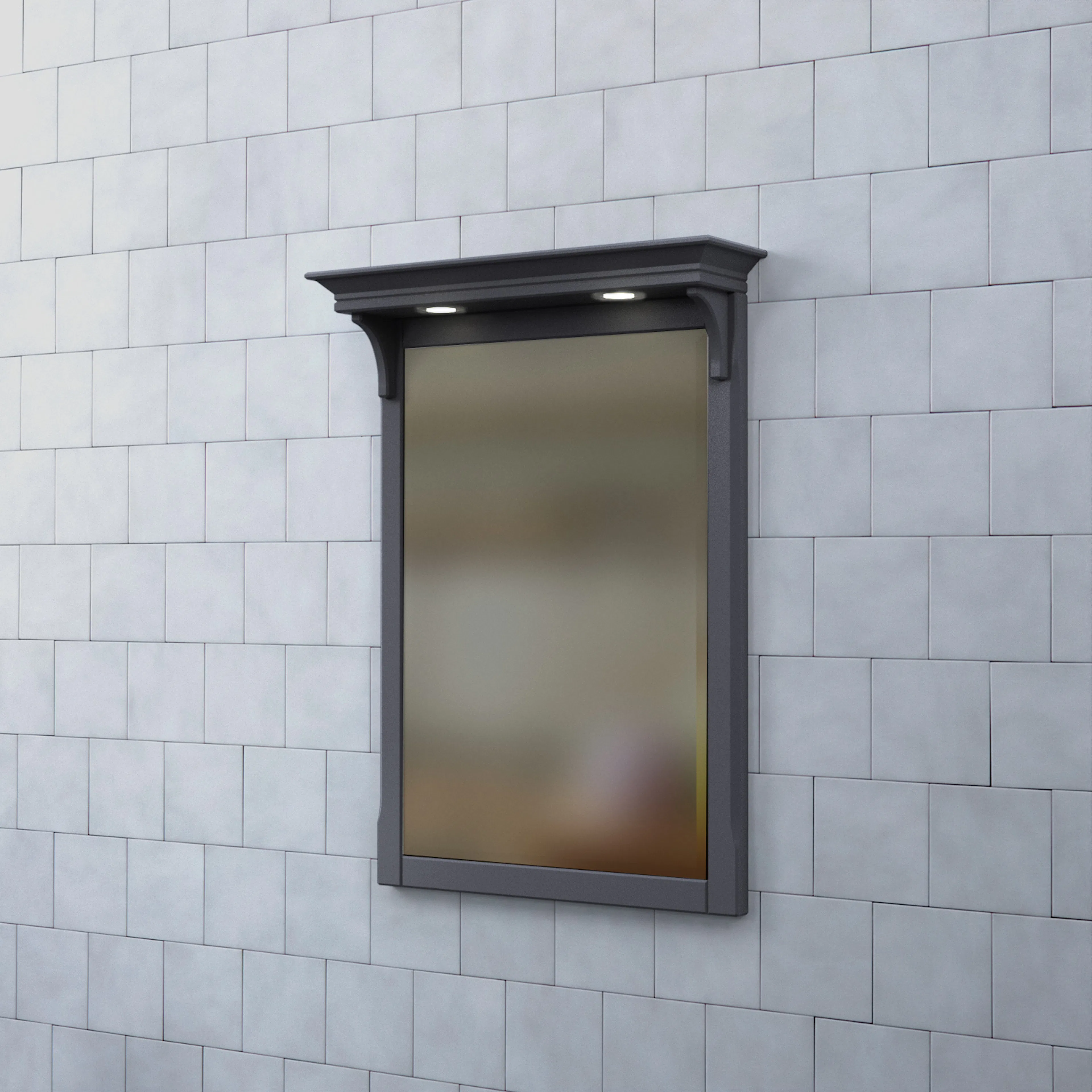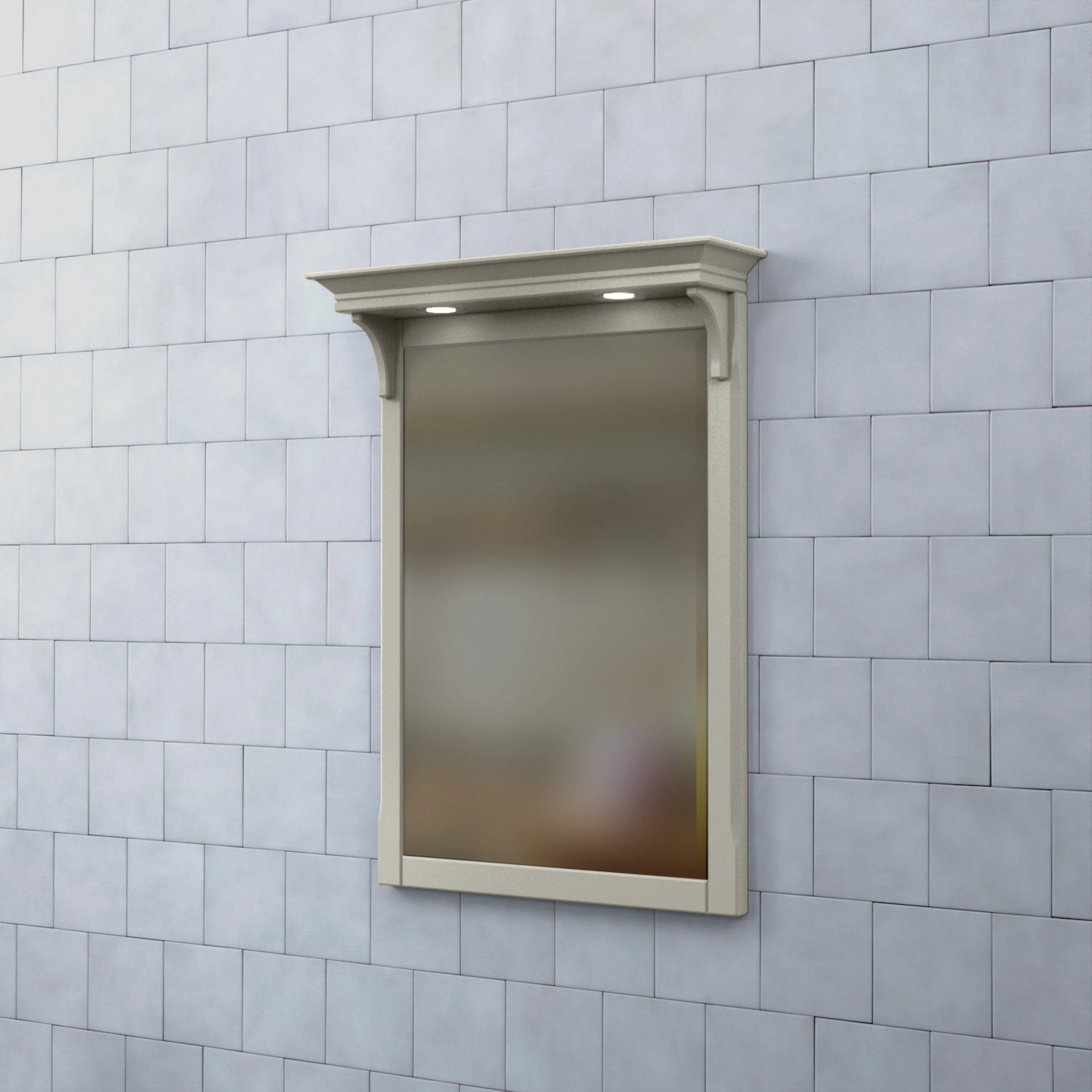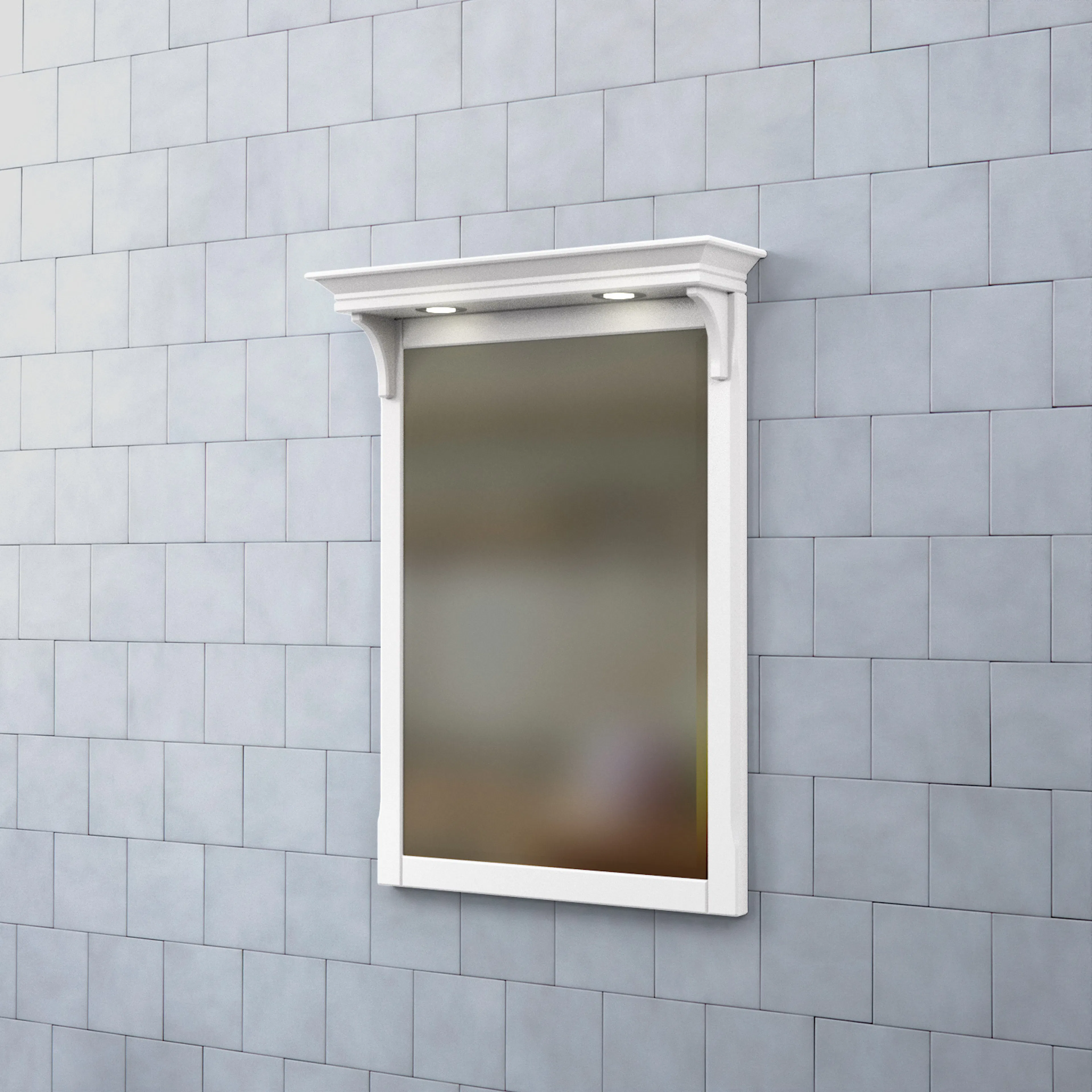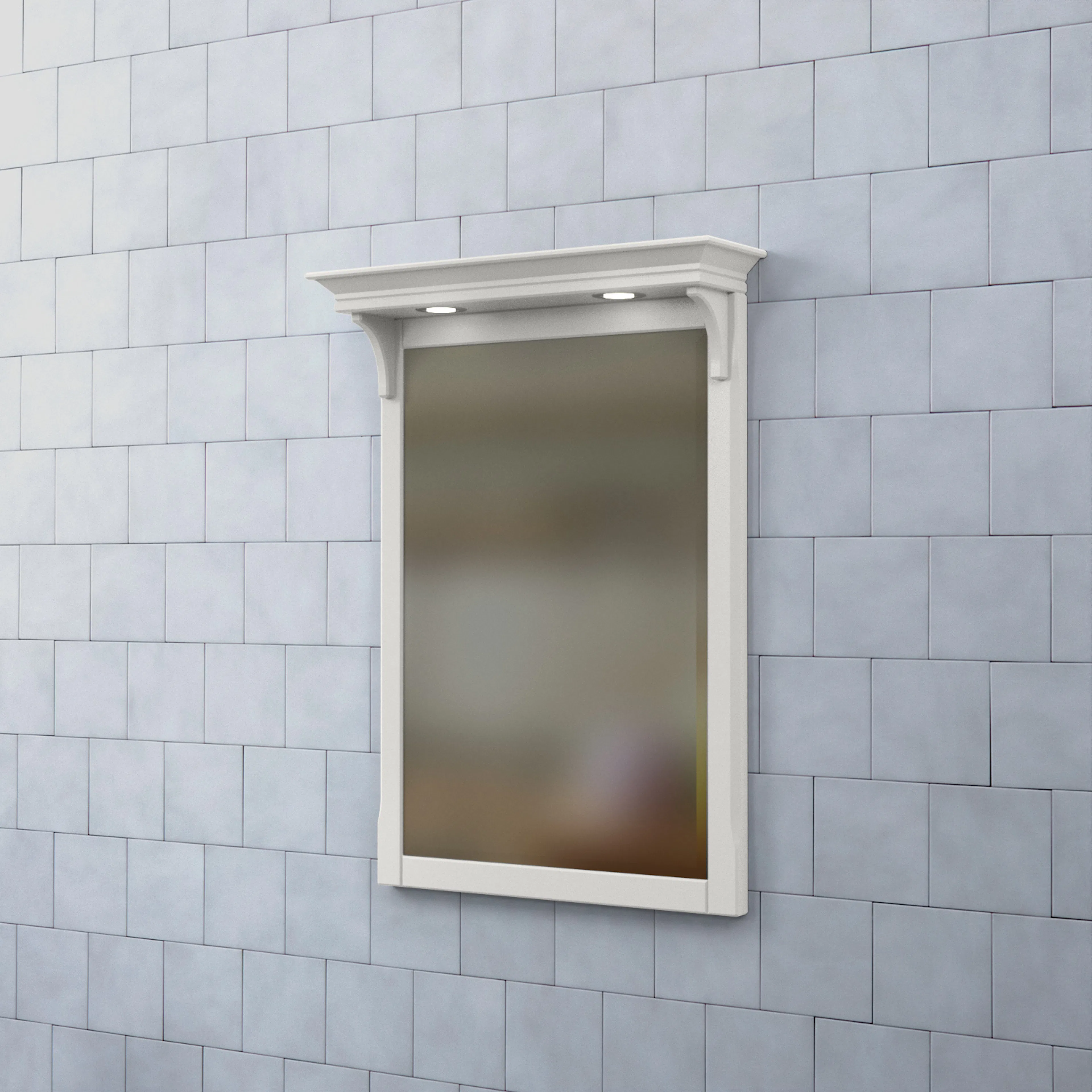 Spegel Saga med Belysning från Björbo Badrum är en elegant badrumsspegel med infällda LED-spottar. Denna spegel har en vacker krönlist som skapar en lyxig känsla. Den är tillverkad av målad MDF med spegelglas.