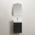 Tvättställsskåp med mjukstängande lucka som ger generös förvaring. Inklusive nedsänkt handfat och spegelskåp med dubbelsidiga spegeldörrar i sammetsmatt färg. Tvättställsskåpet är enkelt att installera för en person med skena på vägg.