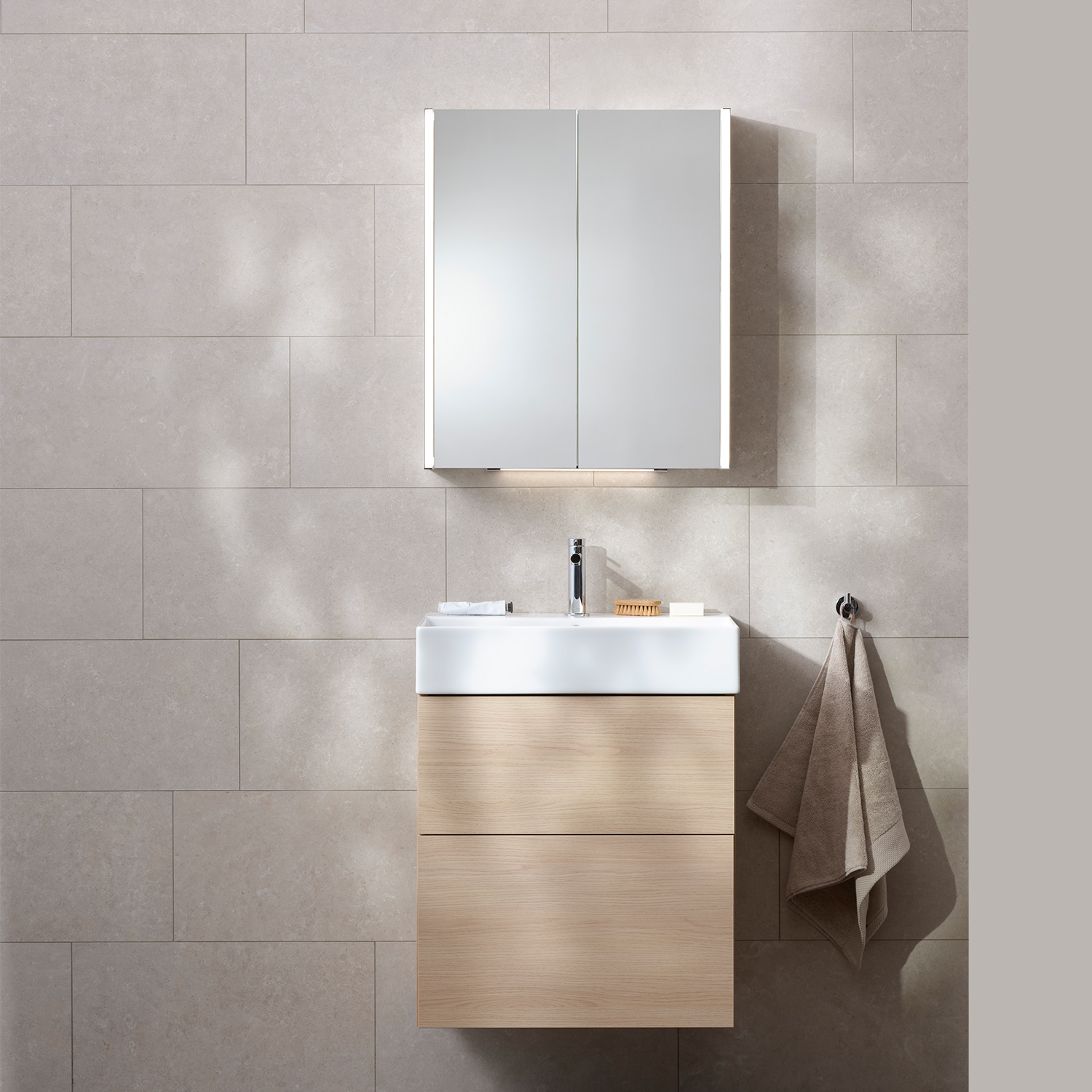 Möbelpaket från Miller Badrum med kommod, tvättställ och spegelskåp.