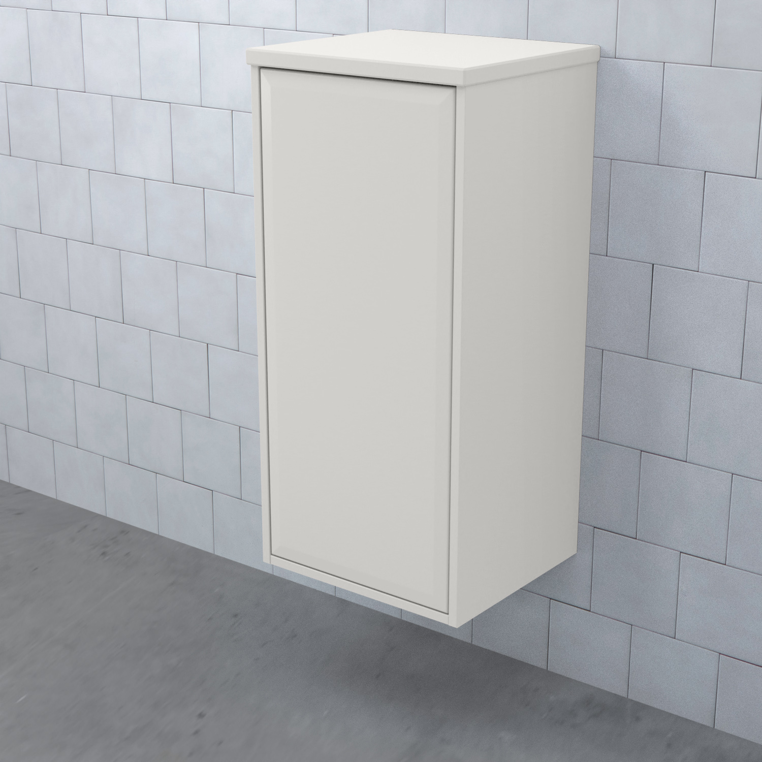 Halvhögt Skåp Björbo Badrum Mejda är ett modernt skåp i stilrent utförande med en dämpad och självstängande lucka. Detta skåp är tillverkat av målat, fukttrögt skivmaterial. Skåpet levereras utan handtag.