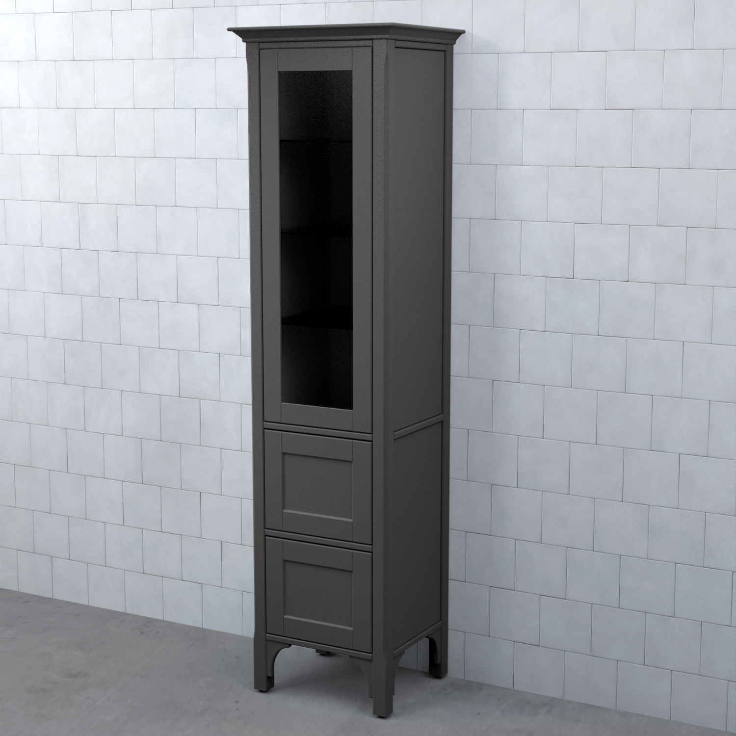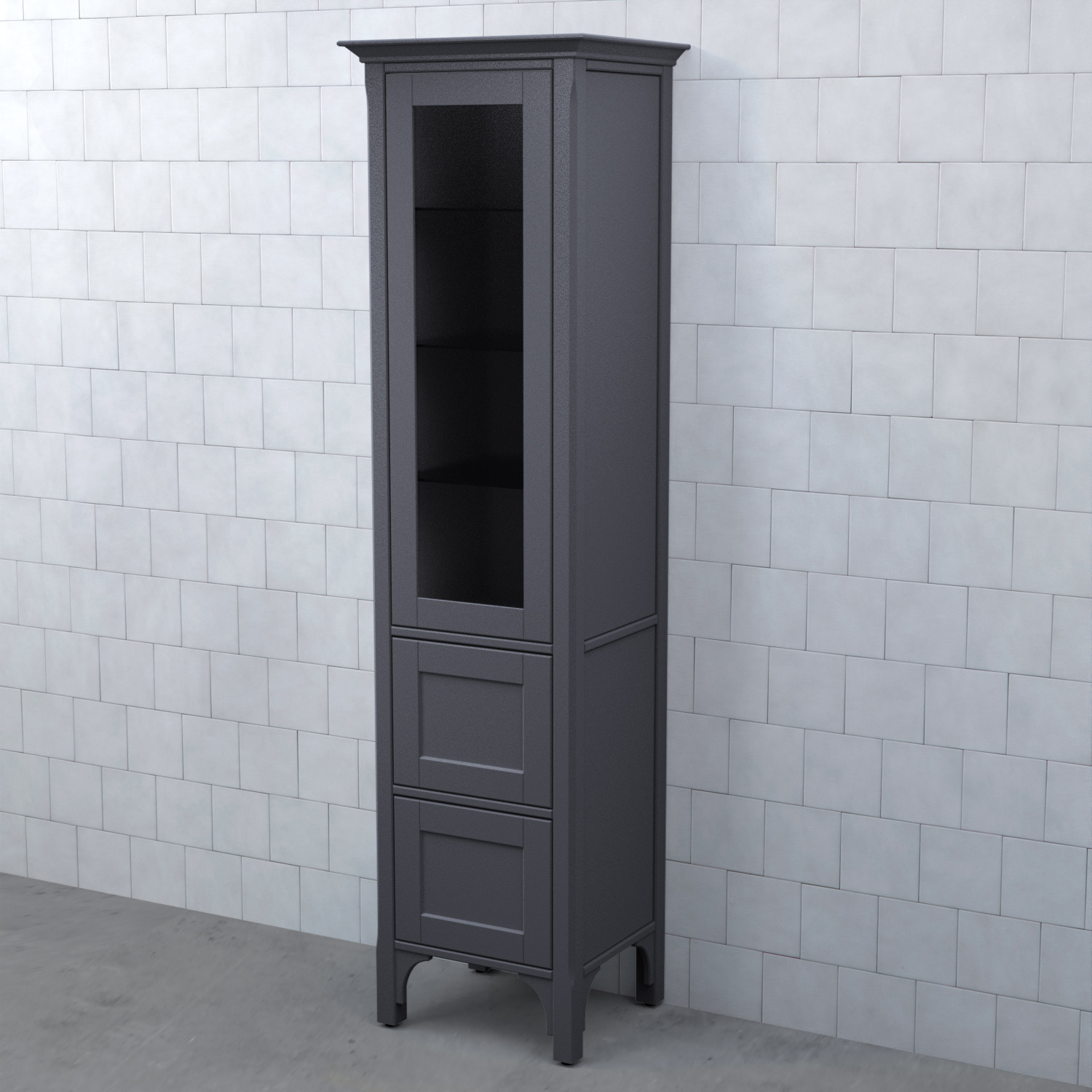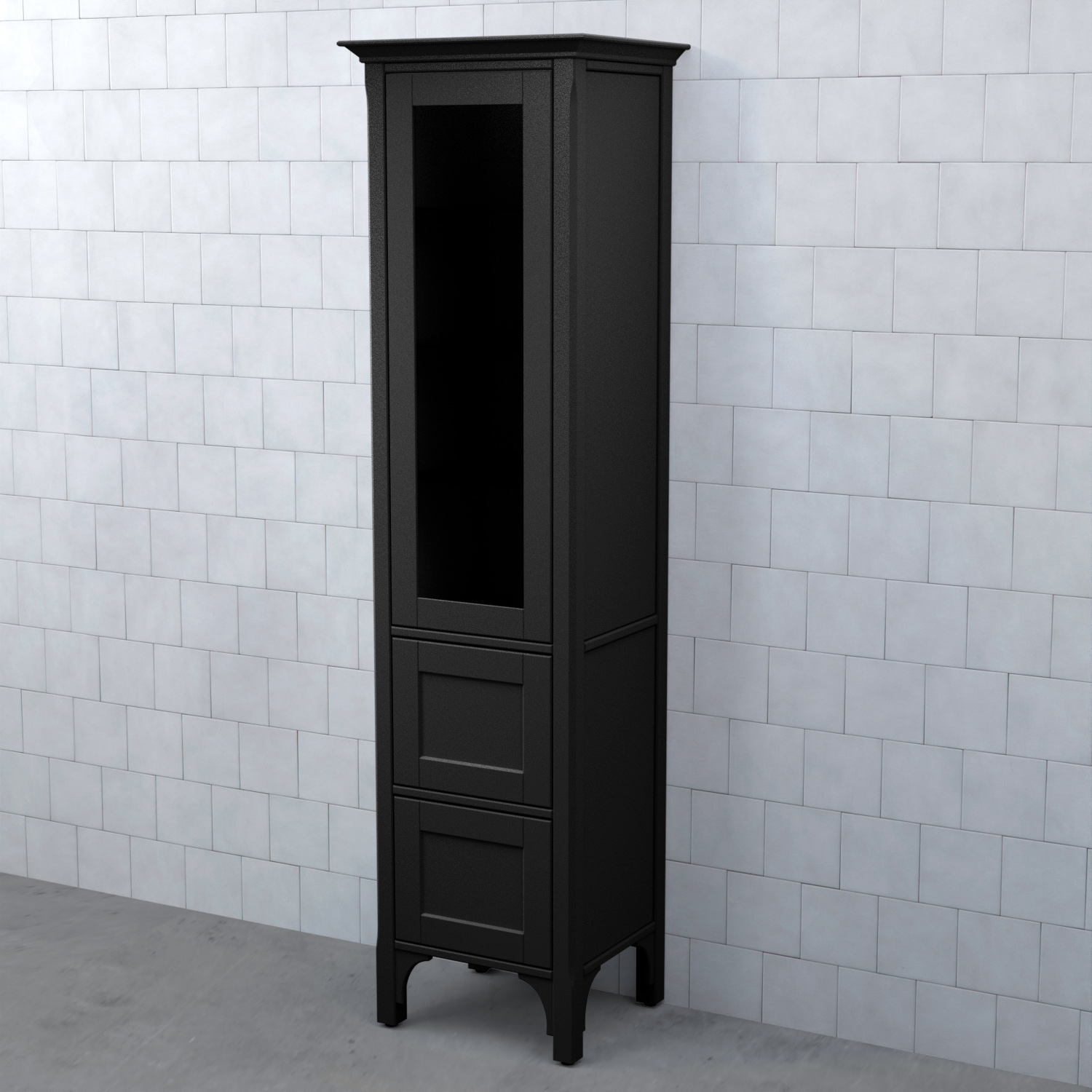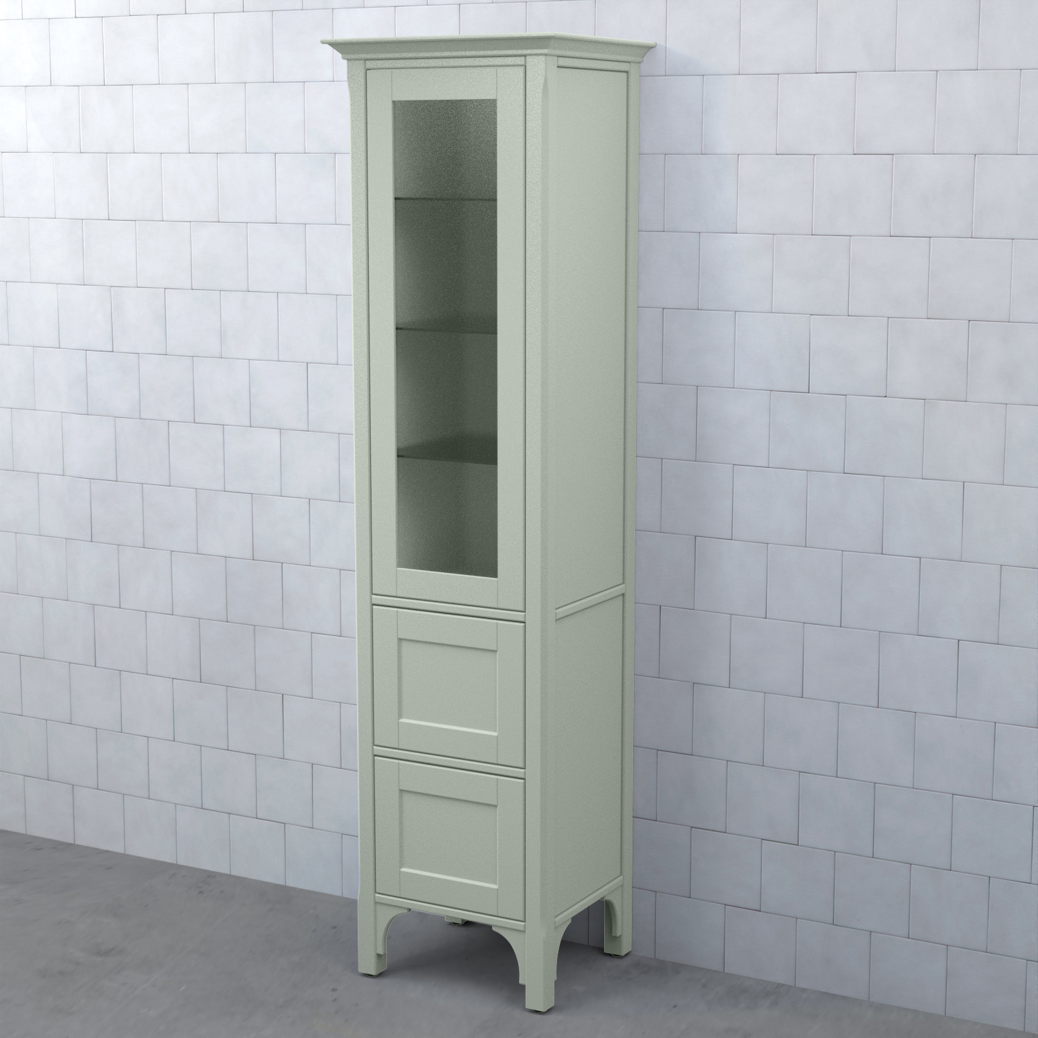 Högskåp Saga Vitrinlucka från Björbo Badrum är ett klassiskt högskåp i romantisk stil. Skåpet har en vitrinlucka på övre delen och två djupa och mycket stabila fullutdragslådor i svartbetsat trä med mjukstängning och självindrag längst ner. Stommen är gjord av målad MDF och skåpet har glashyllor invändigt.