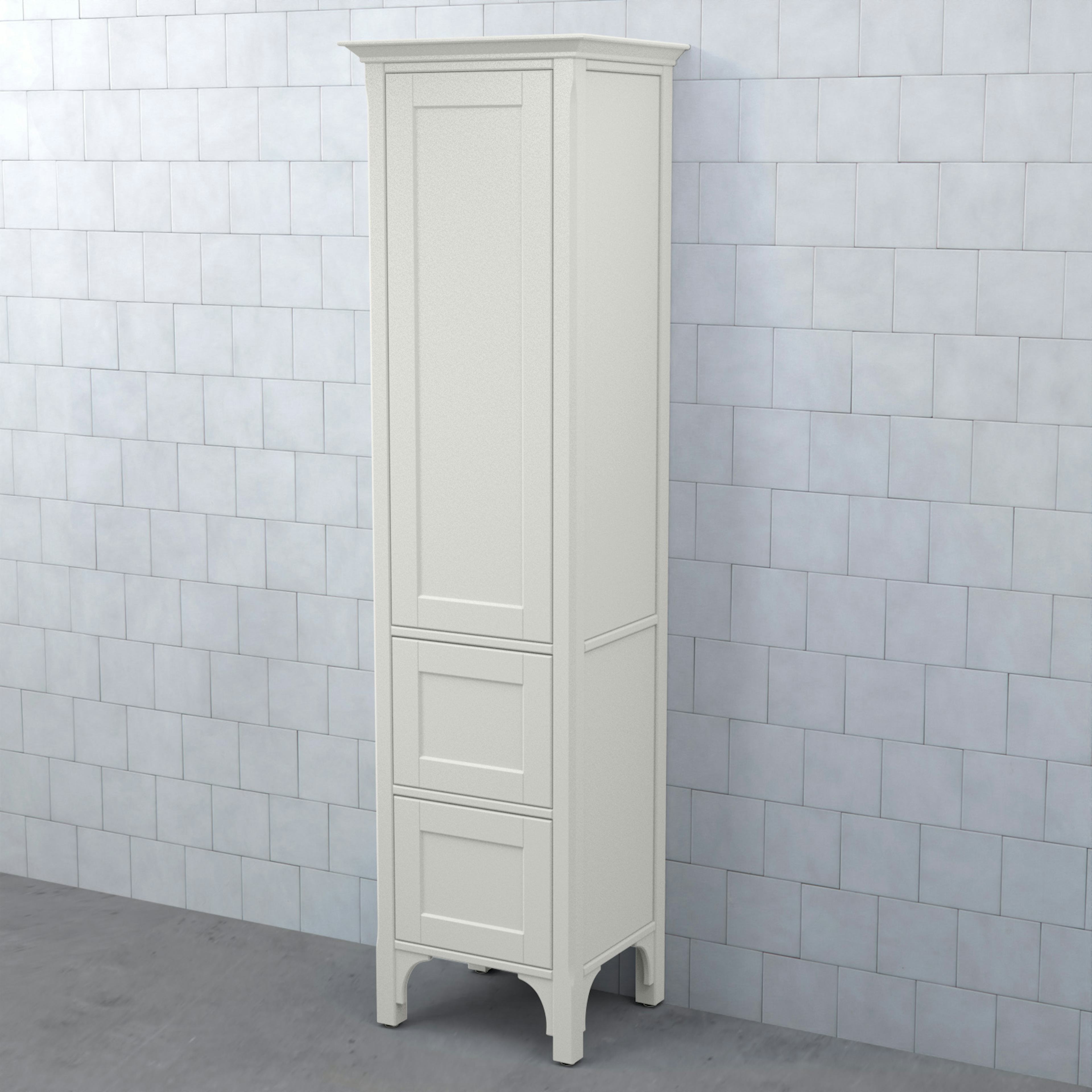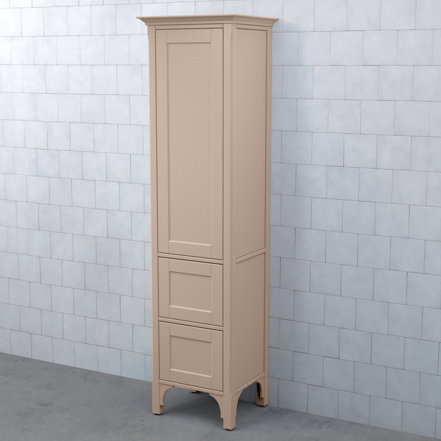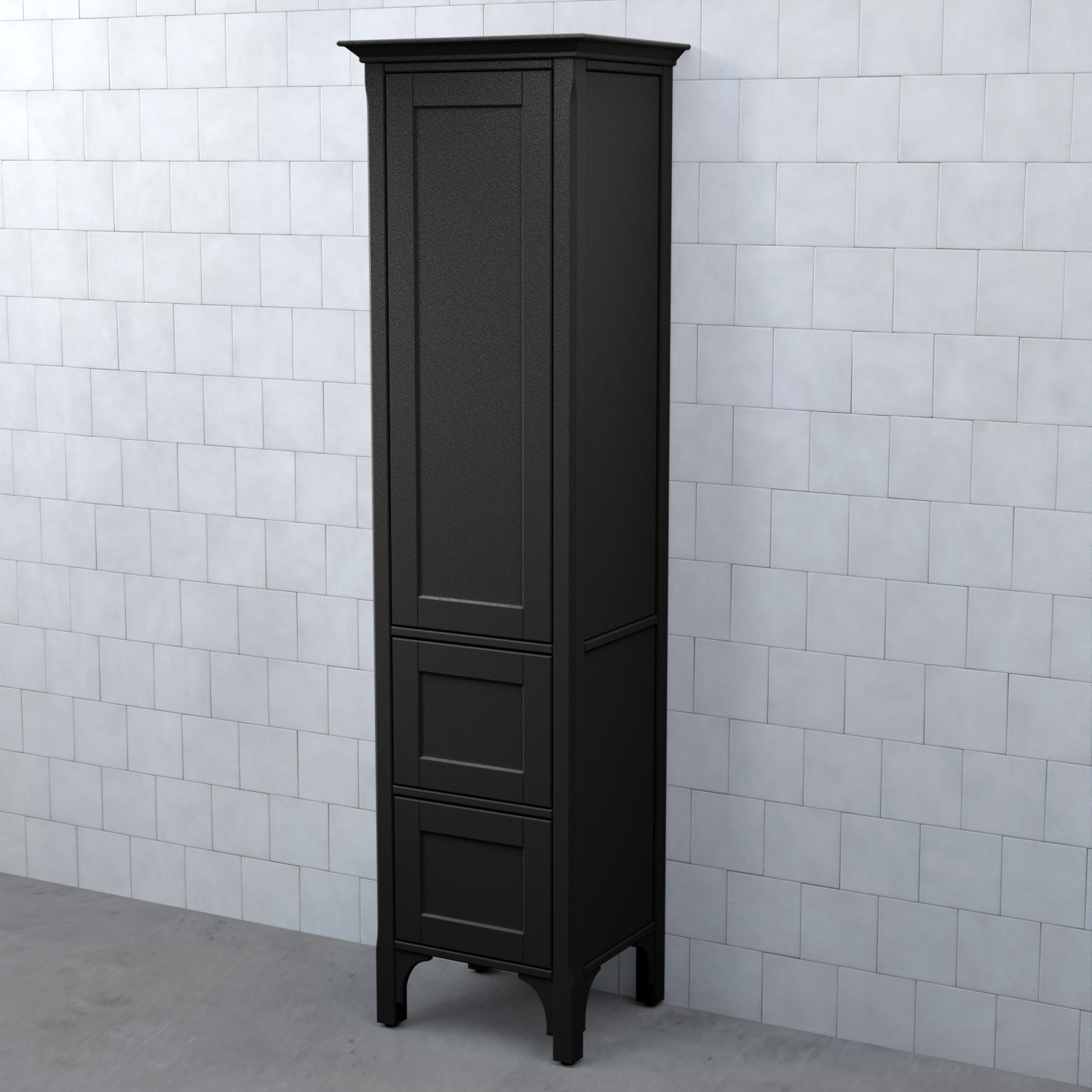 Högskåp Saga från Björbo Badrum är ett klassiskt högskåp i romantisk stil. Skåpet har en heltäckande lucka på övre delen och två djupa och mycket stabila fullutdragslådor i svartbetsat trä med mjukstängning och självindrag längst ner. Stommen är tillverkad av målad MDF.