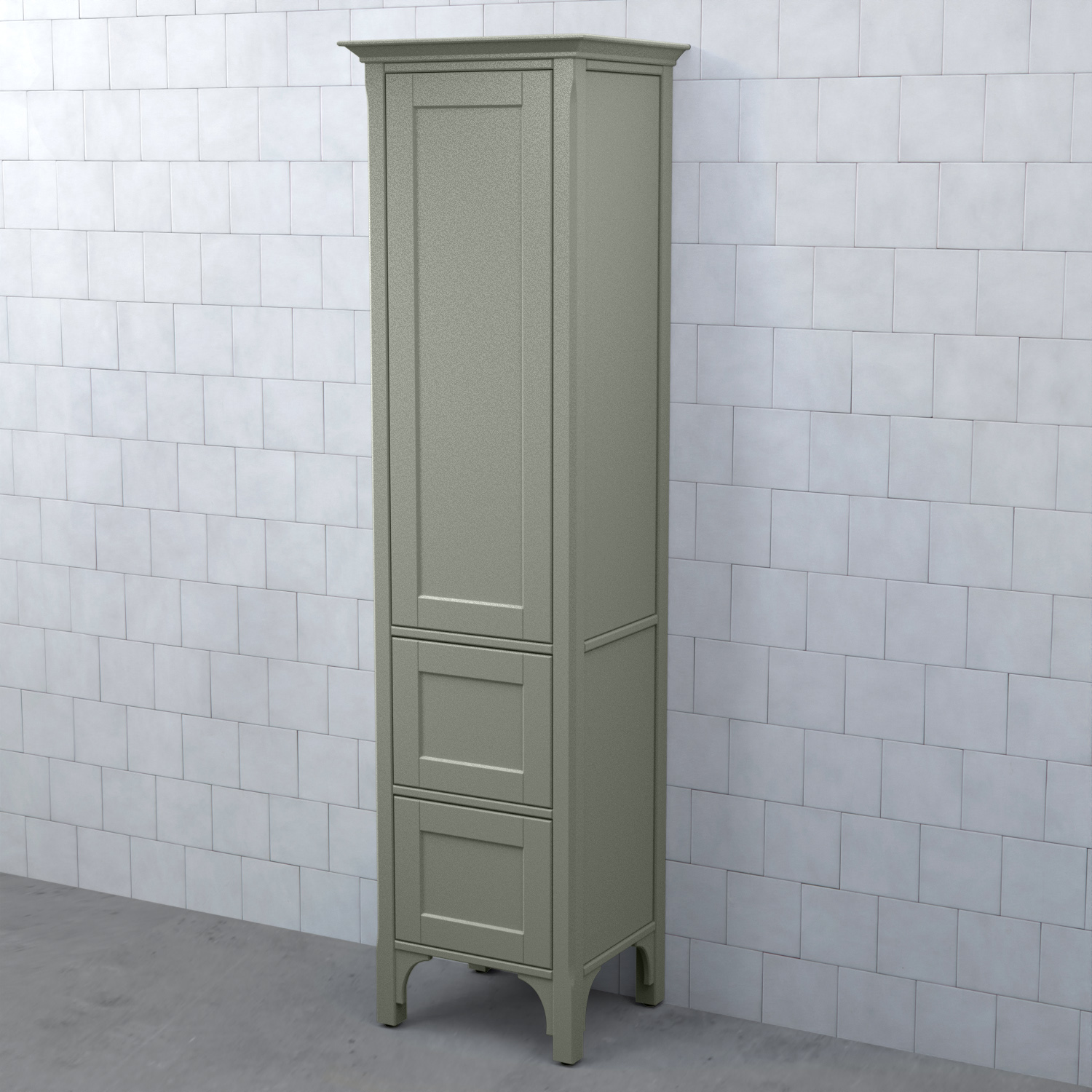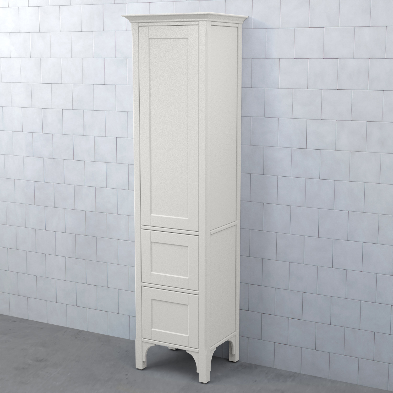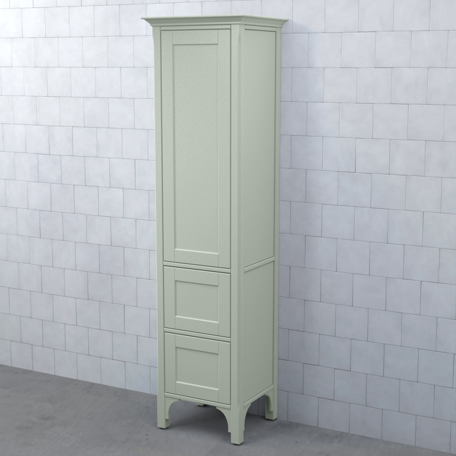 Högskåp Saga från Björbo Badrum är ett klassiskt högskåp i romantisk stil. Skåpet har en heltäckande lucka på övre delen och två djupa och mycket stabila fullutdragslådor i svartbetsat trä med mjukstängning och självindrag längst ner. Stommen är tillverkad av målad MDF.