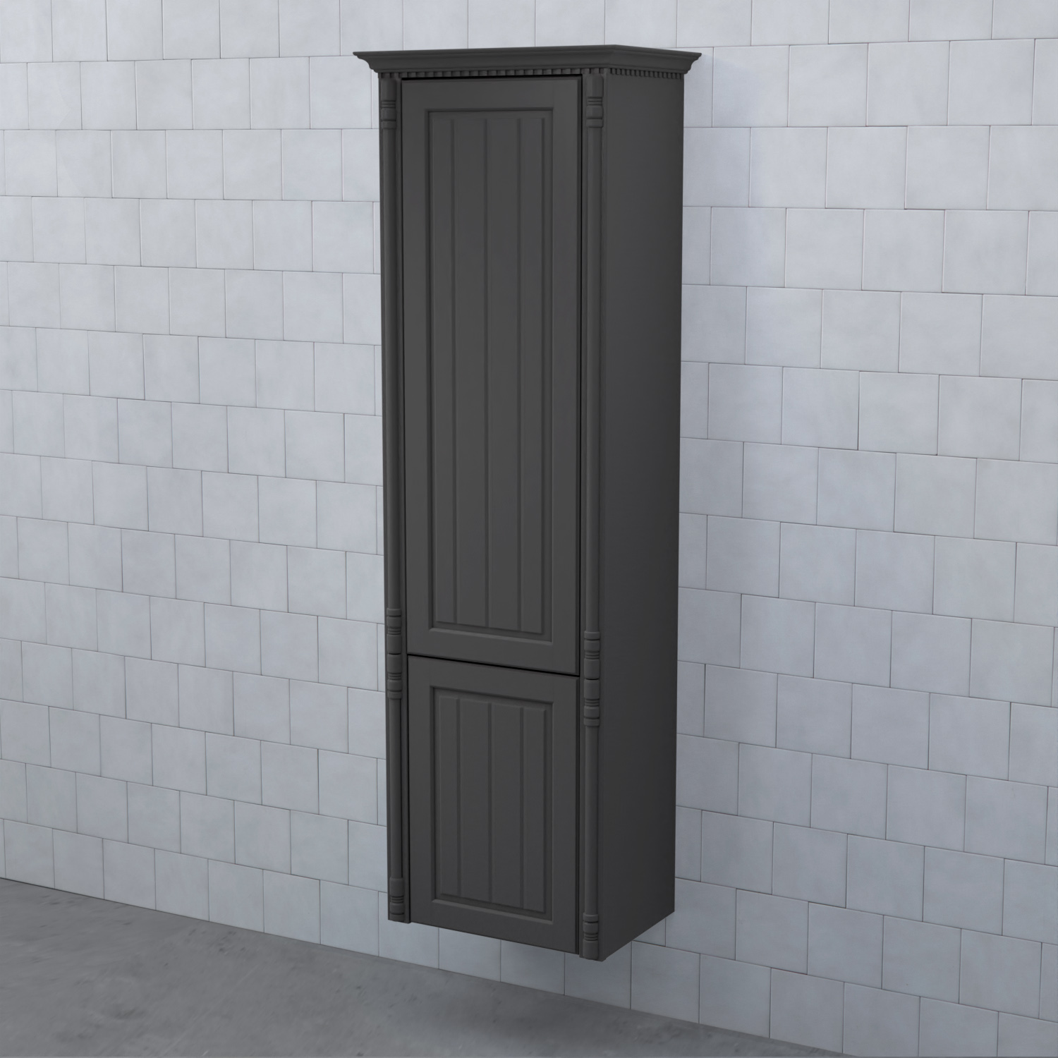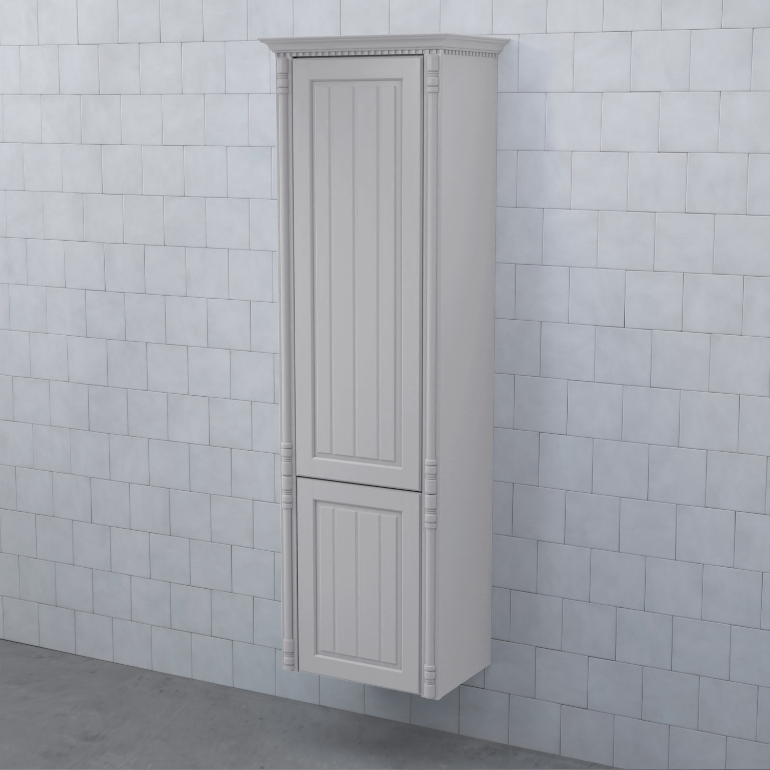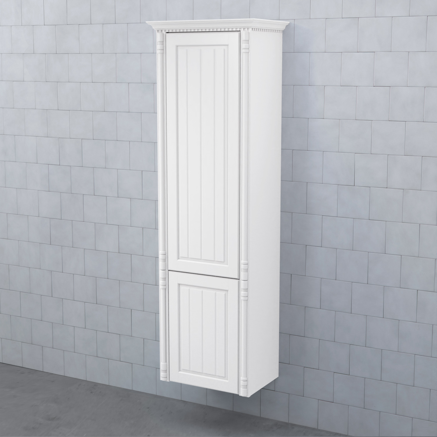 Högskåp Valhall med Hög och Låg Lucka från Björbo Badrum är ett klassiskt badrumsskåp med en tandad krönlist och pelare som stilfullt ramar in möbeln. Skåpets stomme är gjord av målad MDF med vackra ramluckor med utfrästa spår.