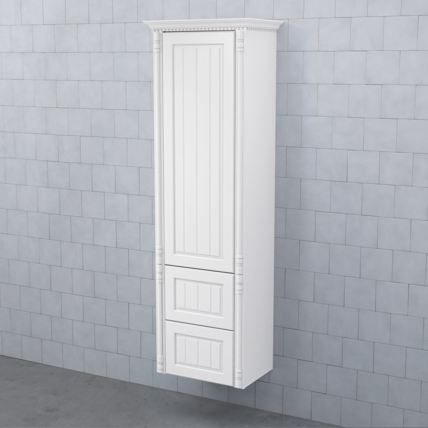 Högskåp Valhall med Lucka och 2 Lådor från Björbo Badrum är ett stilrent badrumsskåp med en lucka i övre delen av skåpet och två lådor i nederdelen. Lådorna är stabila fullutdraglådor med dämpning och självindrag. Skåpet har en tandad krönlist och pelare som stilfullt ramar in möbeln. Stommen är gjord av målad MDF med vackra ramluckor med utfrästa spår.