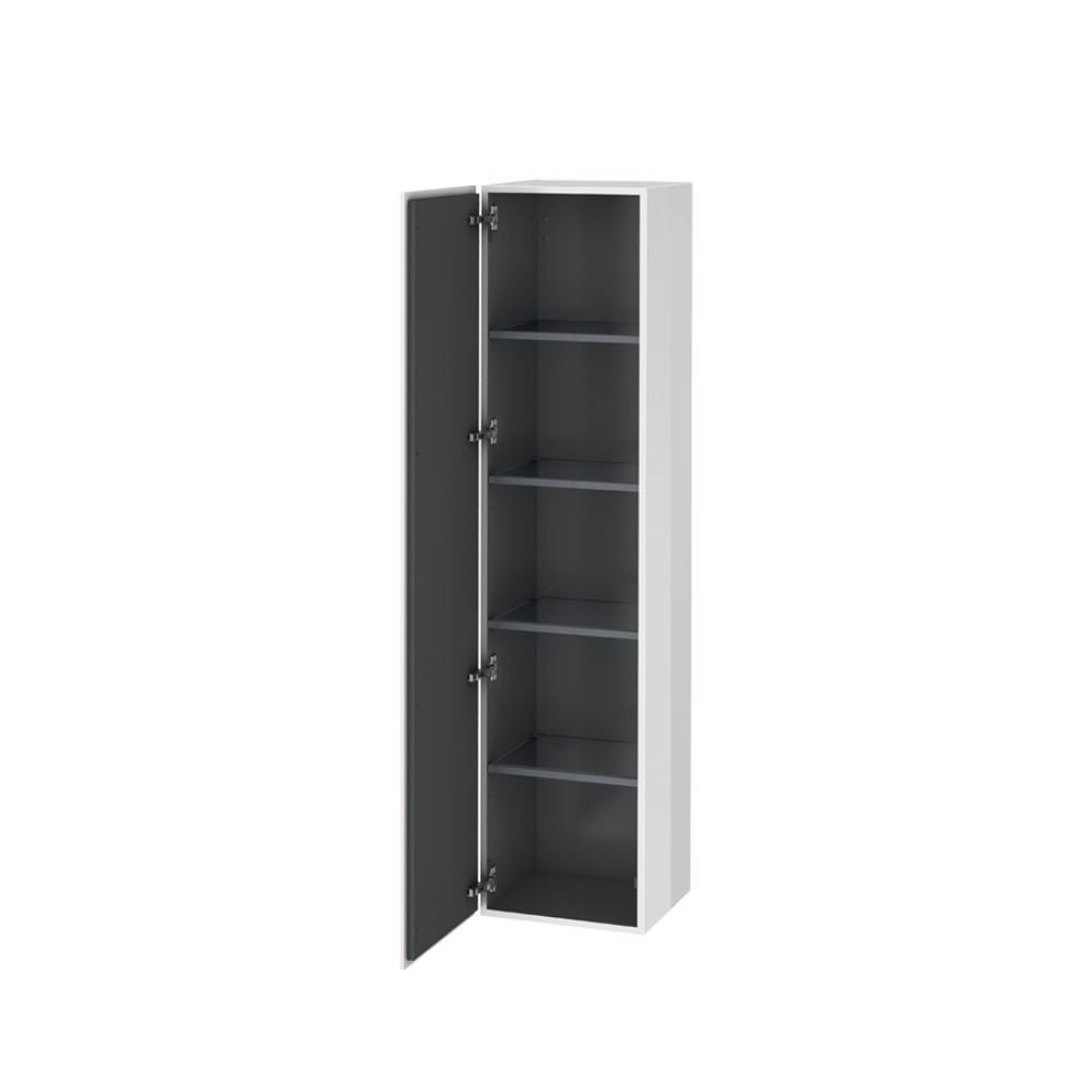Högskåp L-Cube från Duravit är ett elegant högskåp med en dörr med integrerad greppkant. Invändigt har detta högskåp fyra glashyllor med infästning i aluminium. Skåpet är vitt på utsidan med en högblank yta.