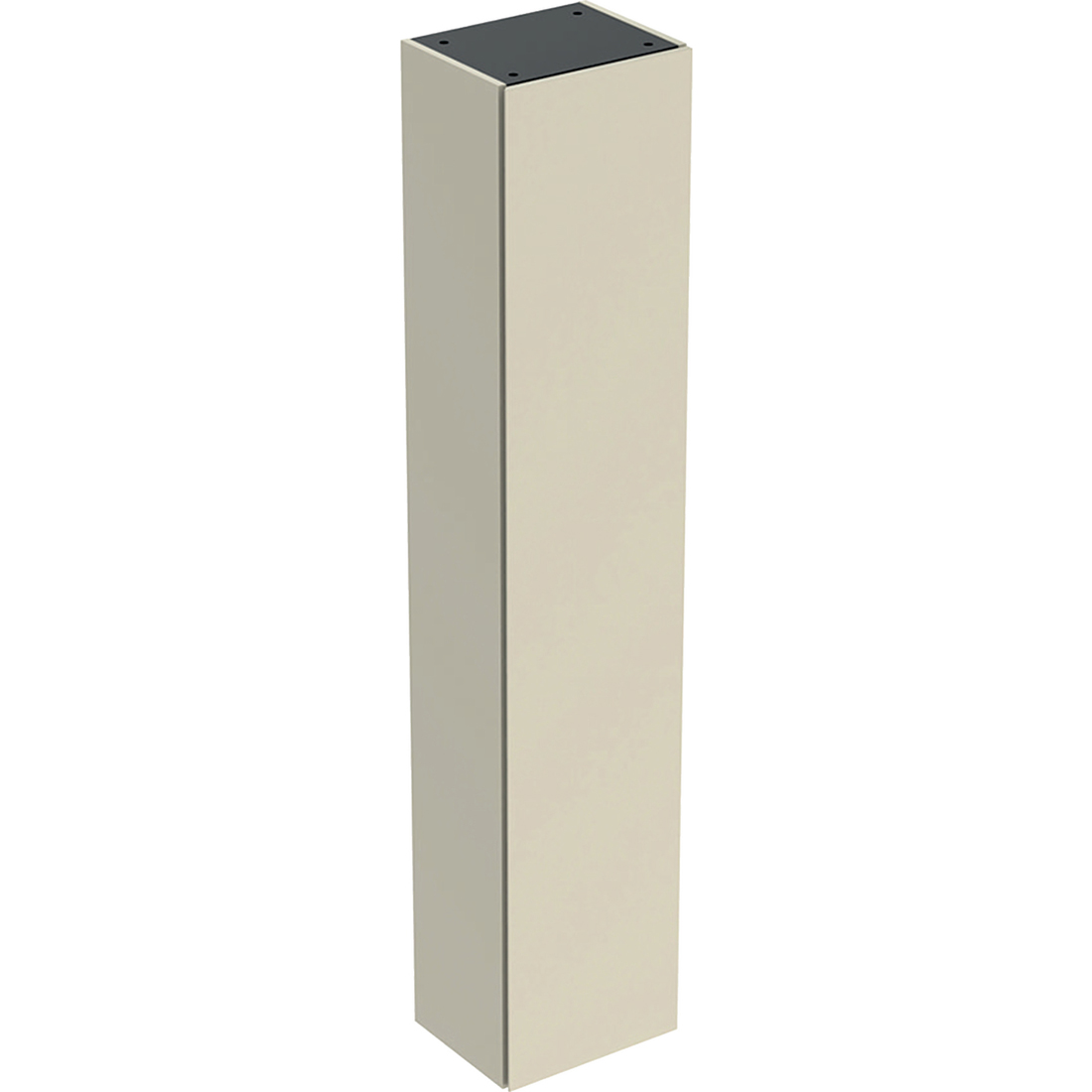Högskåp Geberit iCon är en badrumsmöbel med ett fast hyllplan, fyra hyllplan i glas och en dörr med dämpningsmekanism. Möbeln är tillverkad i fukttålig MDF och levereras färdigmonterad.