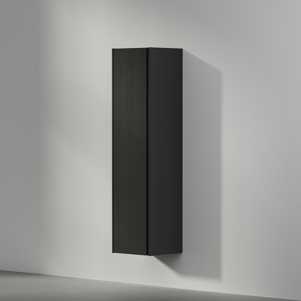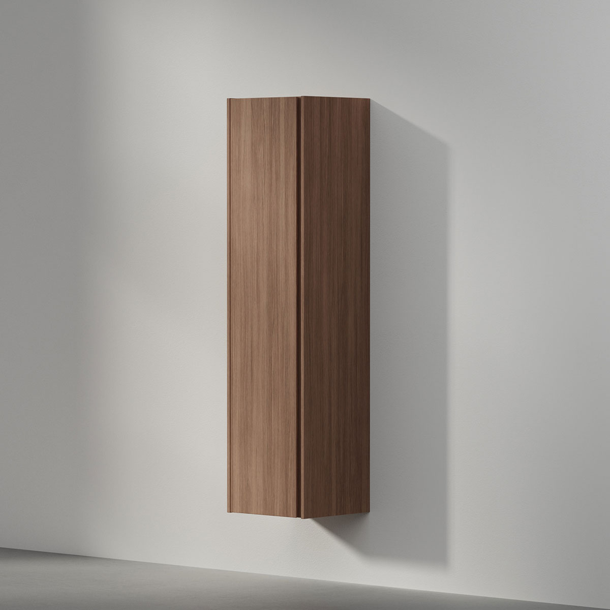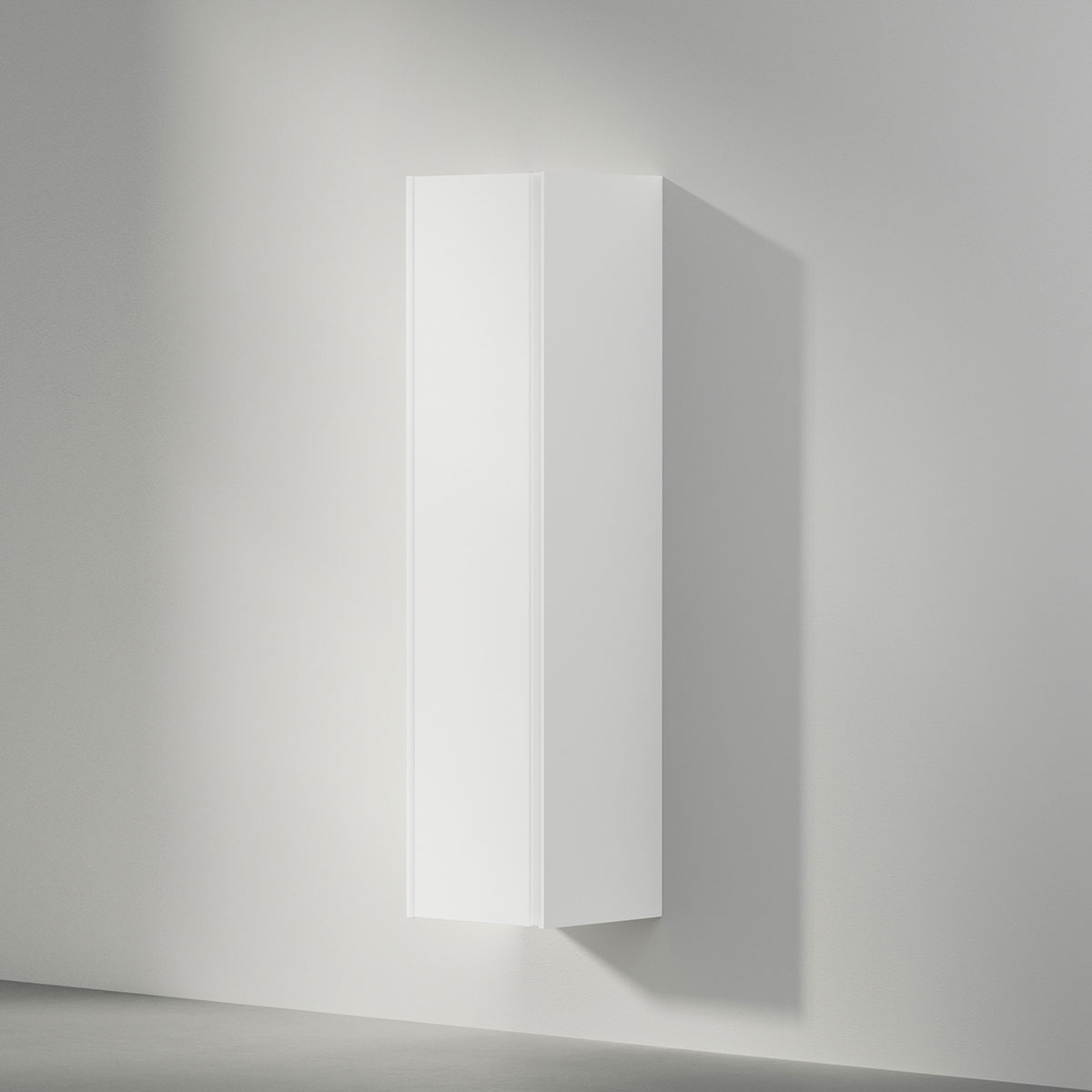 Högskåp INR Grand Grip är ett stilrent badrumsskåp som matchar kommoderna i möbelserie Grand Grip med infräst grepp i dörren. Välj om du vill ha dörren monterad till höger eller vänster. Skåpet har ett fast hyllplan i trä, övriga i 6 mm härdat säkerhetsglas, samtliga flyttbara.