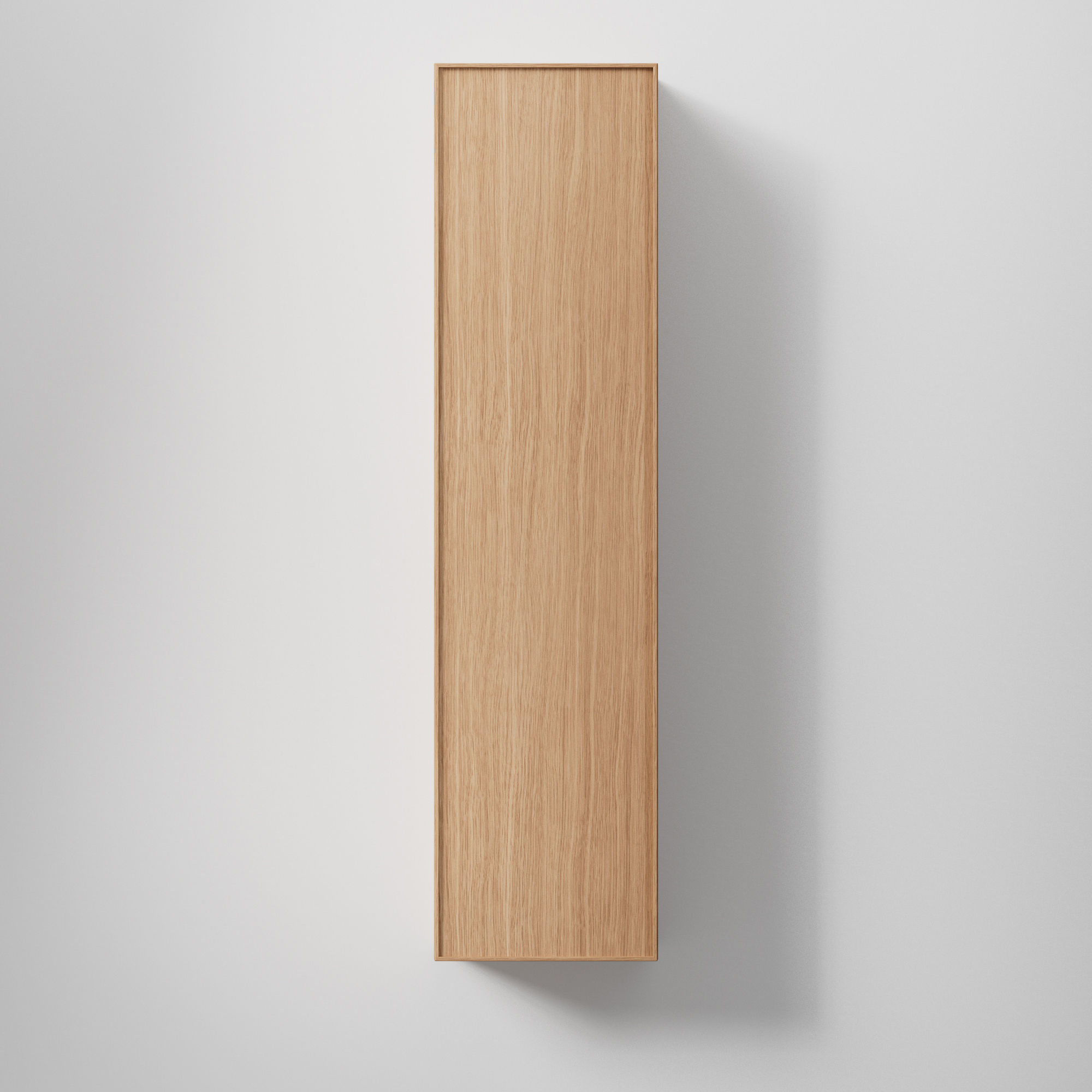 Med sin släta front och stilrena ram ger det en elegant och tidlös look. Välj mellan fanér för en modern retrostil eller skräddarsy ditt högskåp i valfri NCS-färg för ett personligt uttryck. Tack vare sitt slimmade djup på 30 cm är det en utmärkt lösning även för mindre badrum där smart förvaring behövs.