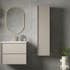 Både kommoder och högskåp finns i färgalternativen Ek, Valnöt, Grå Furu och Beige Mink, med autentiska träimitationer som bidrar till en varm och naturlig känsla i badrummet. Den laminerade MDF-ytan är fukttålig och hållbar, vilket gör möblerna särskilt lämpade för badrumsmiljöer. De subtila nyanserna och detaljerna i träimitationen skapar en känsla av exklusivitet och stil, medan den beigelackerade ytan ger en mer sober känsla.