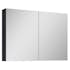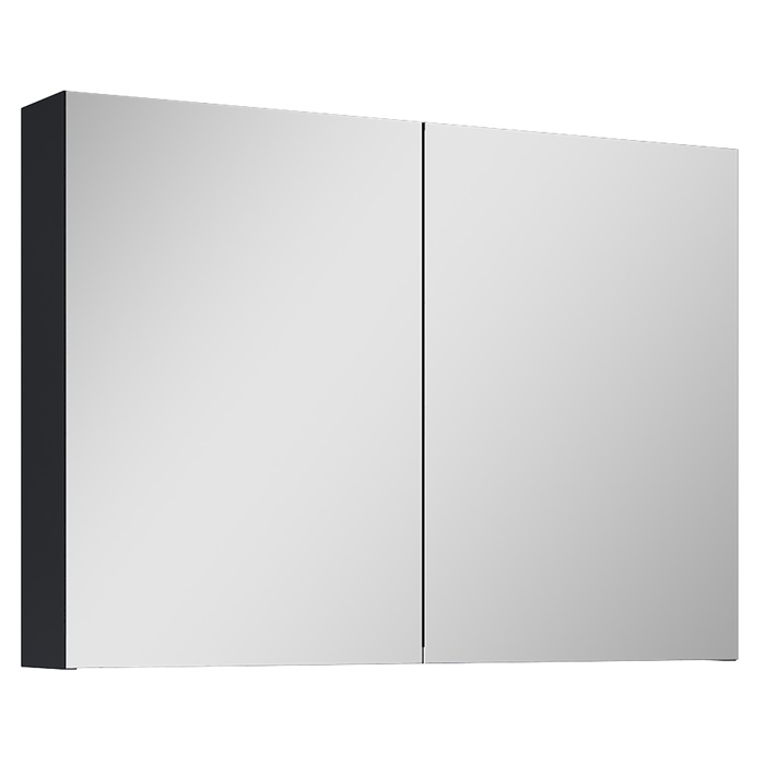 Hyllplanen i glas är flyttbara och skåpet har ett eluttag inuti. Dörrarna är mjukstängande och har speglar på båda sidor. Levereras färdigmonterat.