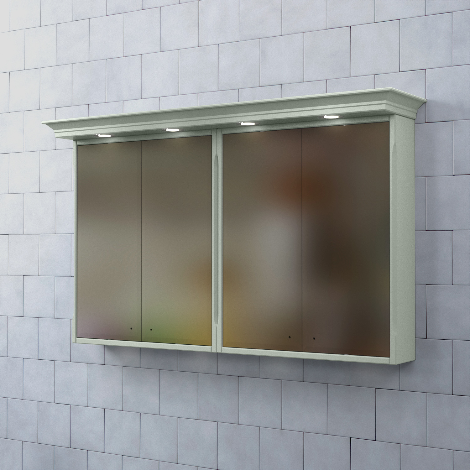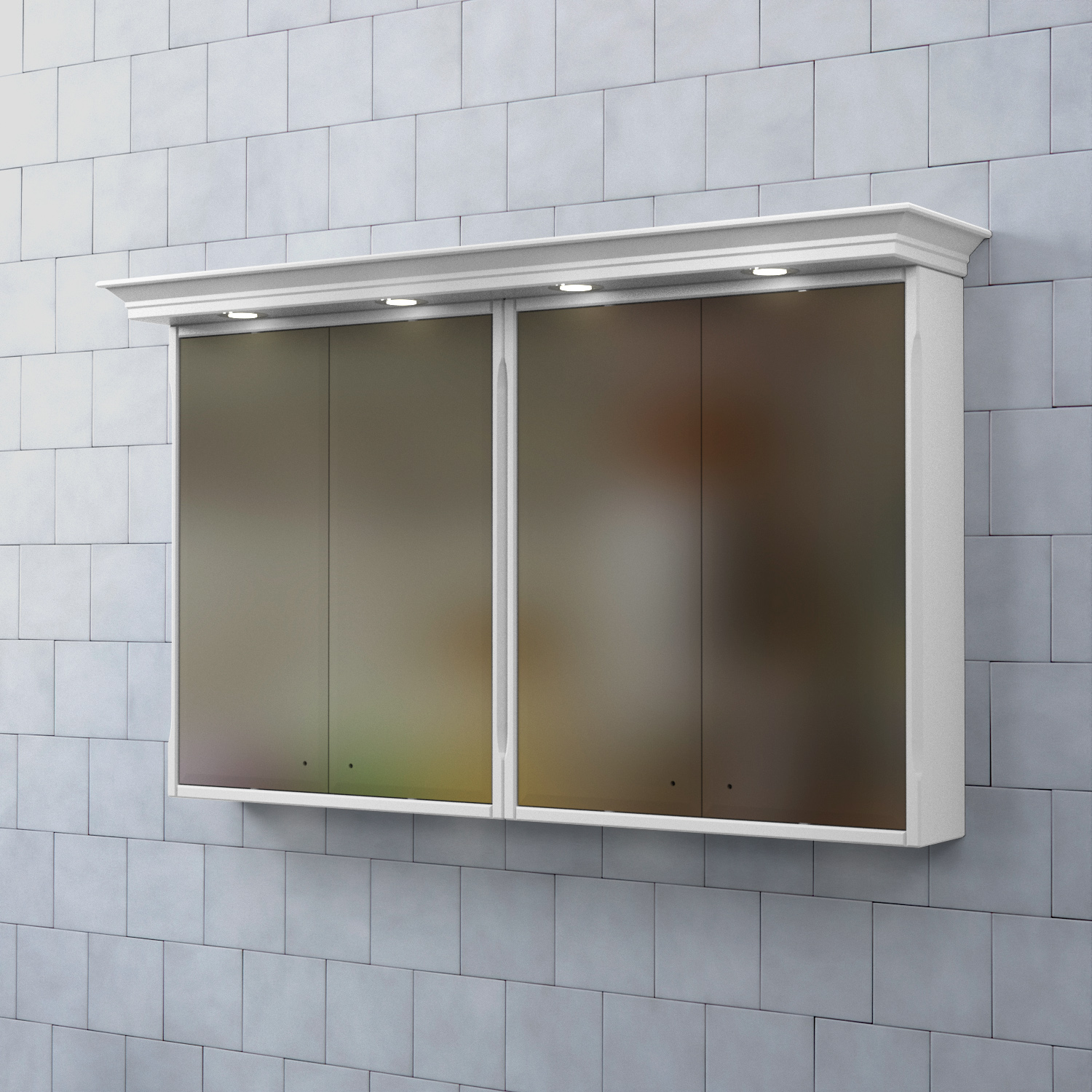 Spegelns stomme är tillverkad av målad MDF med spegelglas. Komplettera spegelskåpet med knoppar och dimmerfunktion till LED-belysningen.