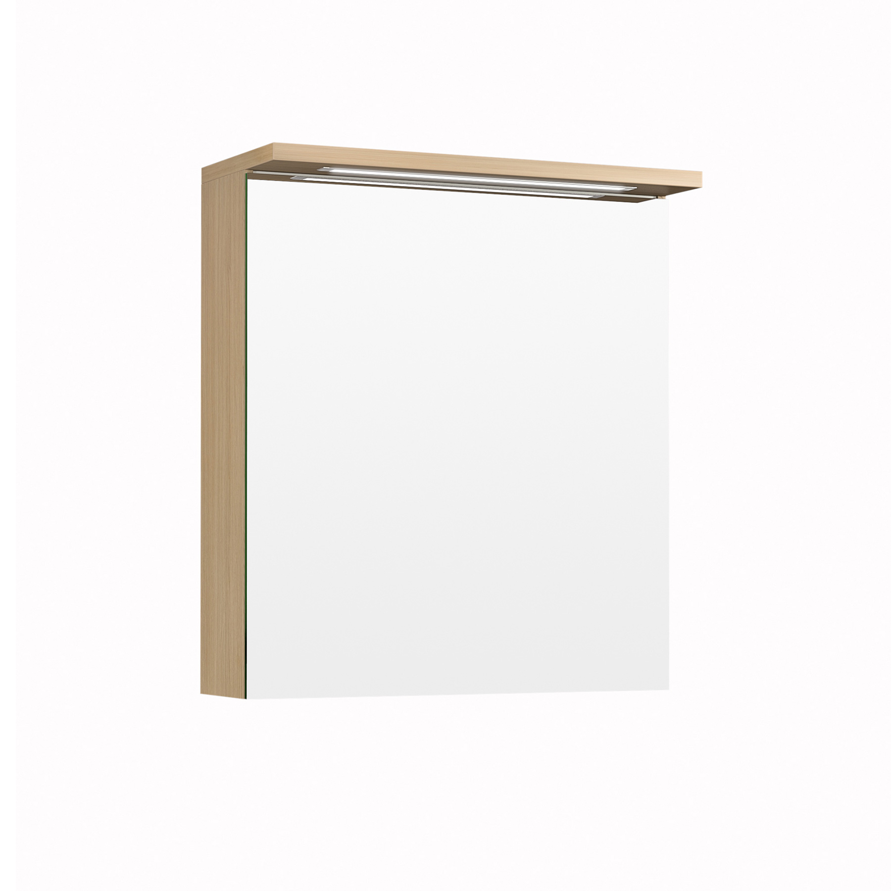 Spegelskåp Temal Highlight med LED-Belysning och en dörr är ett exempel på hur skönhet och praktiska egenskaper smidigt kombineras. LED-profilbelysningen i rampen och i botten av spegelskåpet gör att ljuset både faller över spegeln och tvättstället.
