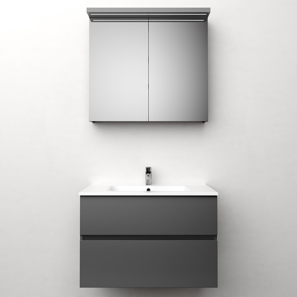 Spegelskåp Westerbergs Samla med funktionell belysning, infälld LED-profil med varmvitt ljus. Välj mellan färgerna vit eller antracit och den bredd du önskar. Mjukstängande, dubbelsidiga spegeldörrar. Eluttag på höger sida och med flyttbara hyllplan i glas med hyllbärare som låser dem säkert på plats. Hel upphängningsskena och justerbara upphängningsbeslag, enkel att installera. Förberett för enkel el-installation. IP44.
