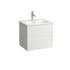 Tvättställskåp Laufen Lua är ett modernt tvättställsskåp med två mjukstängande lådor som levereras med tvättstället Slim. Tvättsstället har ett centrerat blandarhål.
