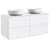 Tvättställsskåp Alterna Gabriella med bänkskiva och två runda ovanpåliggande tvättställ . Bänkskivan är gjord av kvartskomposit och tvättställen i porslin, dia 415 mm. Underskåpen har mjukstängande lådor. Handtag och blandare beställs separat.