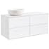 Tvättställsskåp Alterna Gabriella med bänkskiva och runt ovanpåliggande tvättställ . Bänkskivan är gjord av kvartskomposit och tvättställ i porslin, dia 415 mm. Underskåpen har mjukstängande lådor. Handtag och blandare beställs separat.