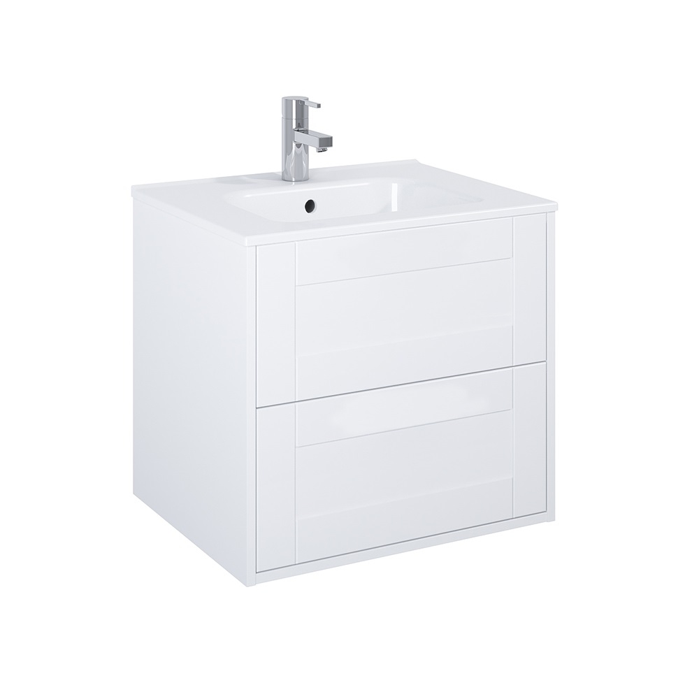 Tvättställsskåp Alterna Gabriella är ett stilrent tvättställsskåp med en underdel och ett porslinstvättställ. Underdelen är tillverkad i vattenavvisande MDF med lackerad ytbehandling. Den är dessutom 3D-laminerad vilket säkerställer extra tålighet mot fukt. Lådorna är mjukstängande. Tvättstället har blandarhål och bräddavlopp. Den eleganta designen gör att tvättställsskåpet passar in i de flesta badrum.