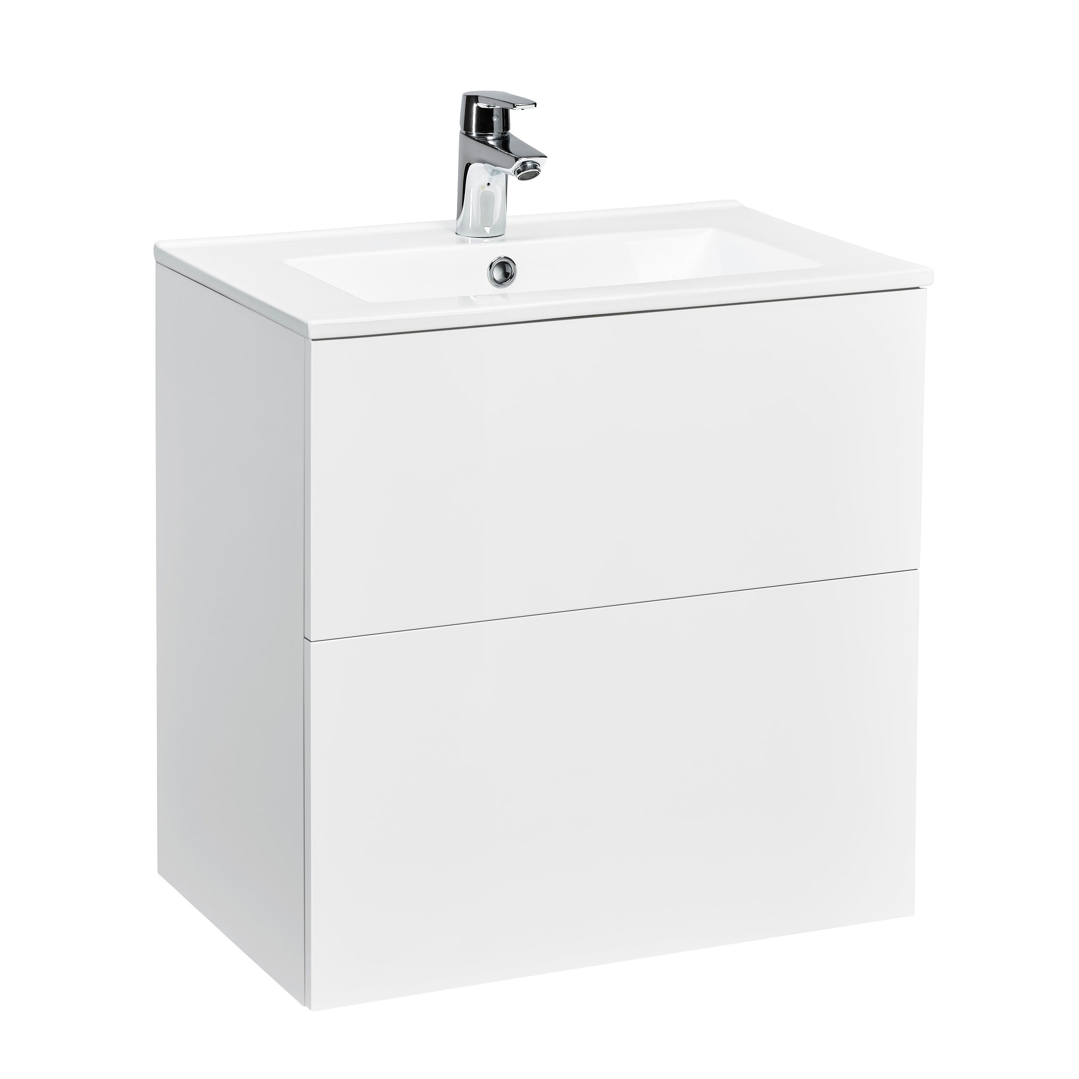Tvättställsskåp Alterna Isella är ett komplett tvättställsskåp som har en stilren och modern design och passar in i de flesta badrum. Det levereras med ett tunt och snygg tvättställ i porslin och underdelen har en lackerad ytbehandling. Underskåpet har två mjukstängande lådor samt inbyggda lådinsatser i översta lådan, vilket är perfekt för förvaring av småsaker och sådant som används ofta. Skåpet levereras färdigmonterat och utan handtag.