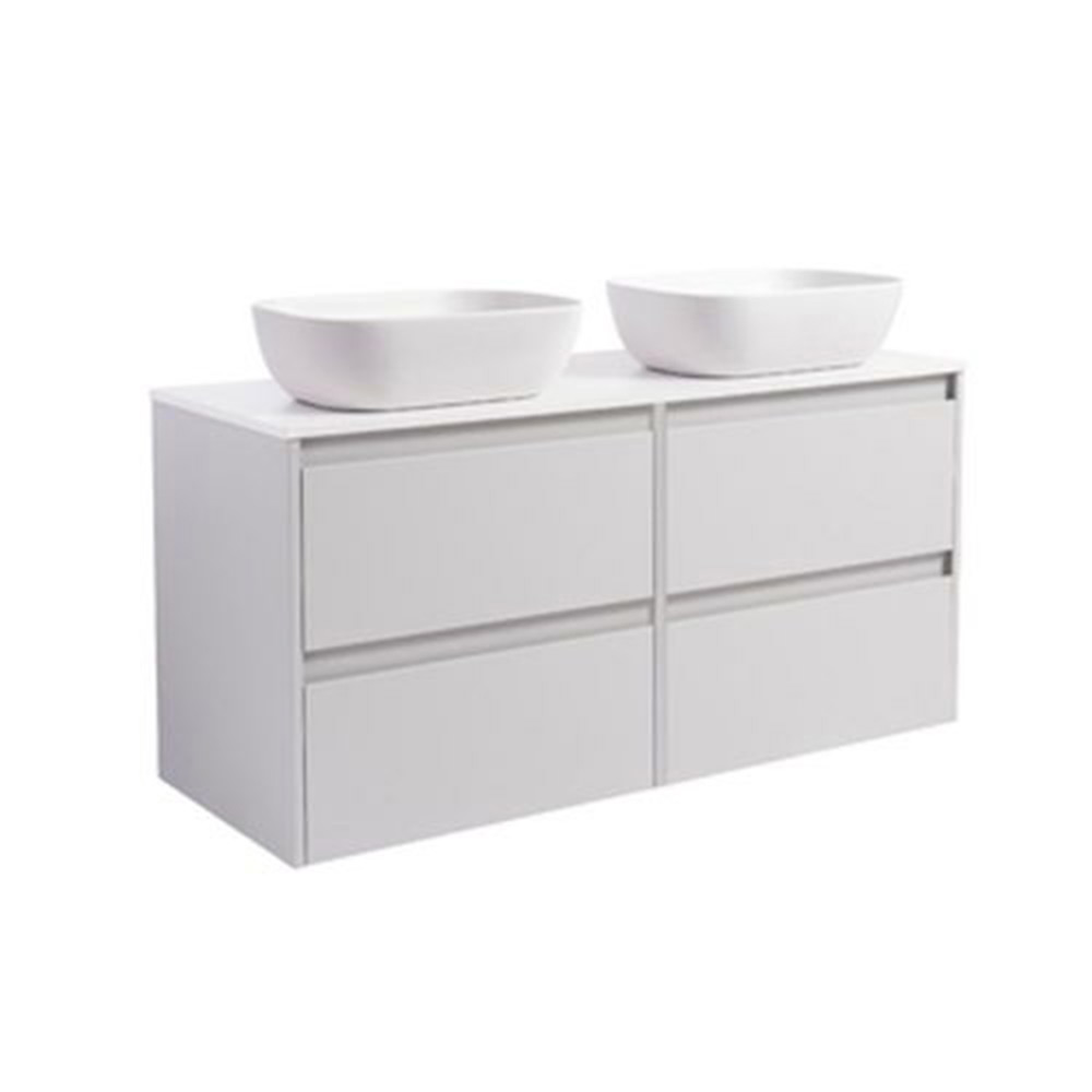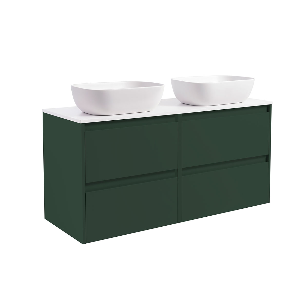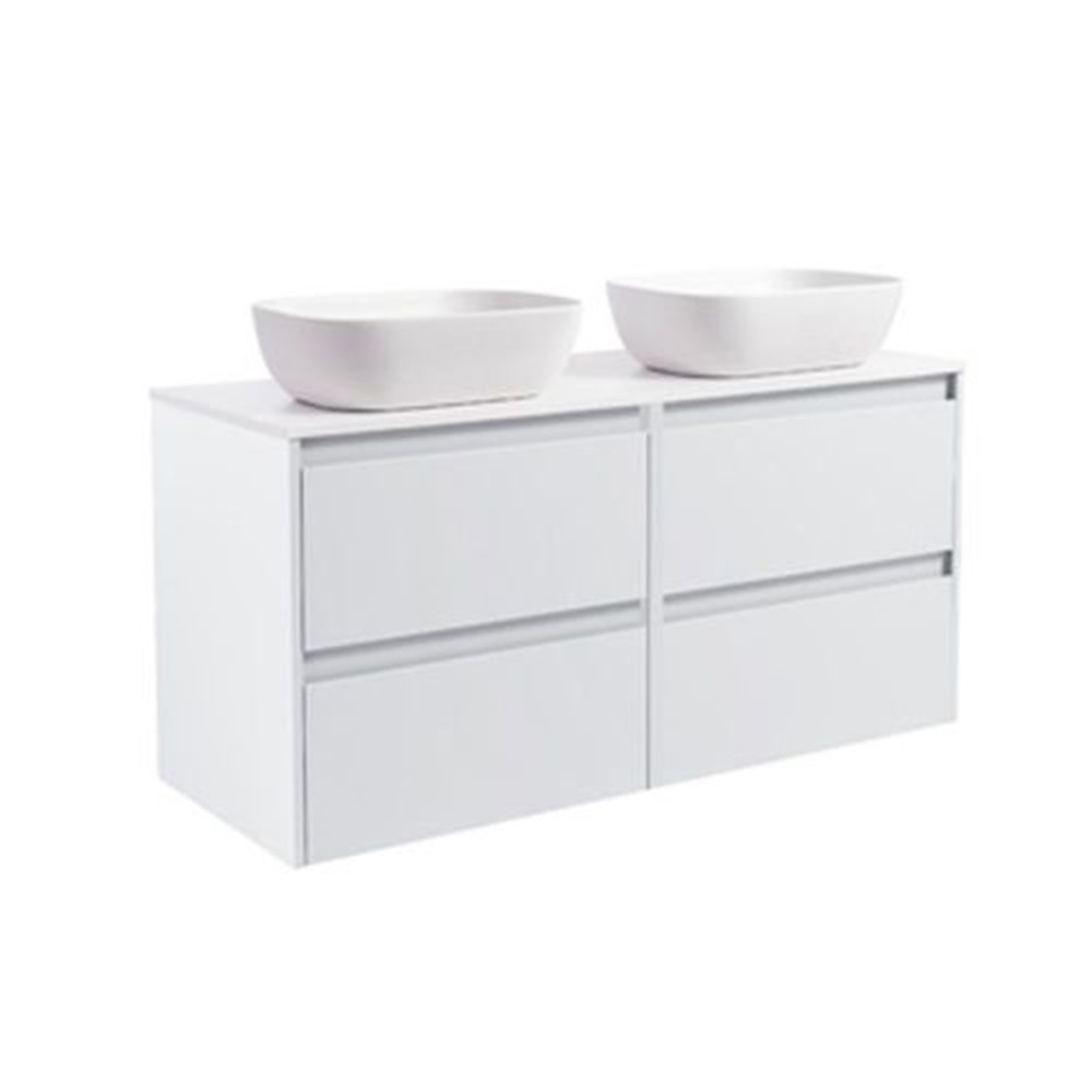 Tvättställsskåp AlternaLuxor 120 Dubbelt med Bänkskiva Kvartskomposit och Rektangulärt Tvättställ