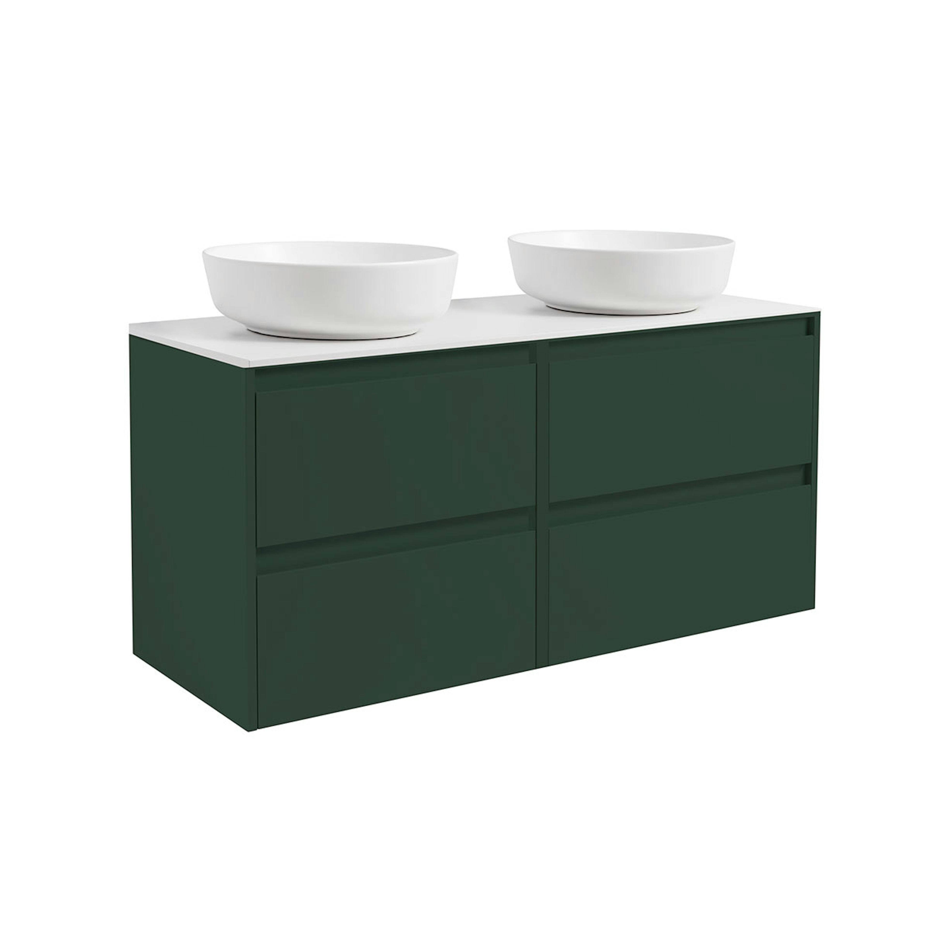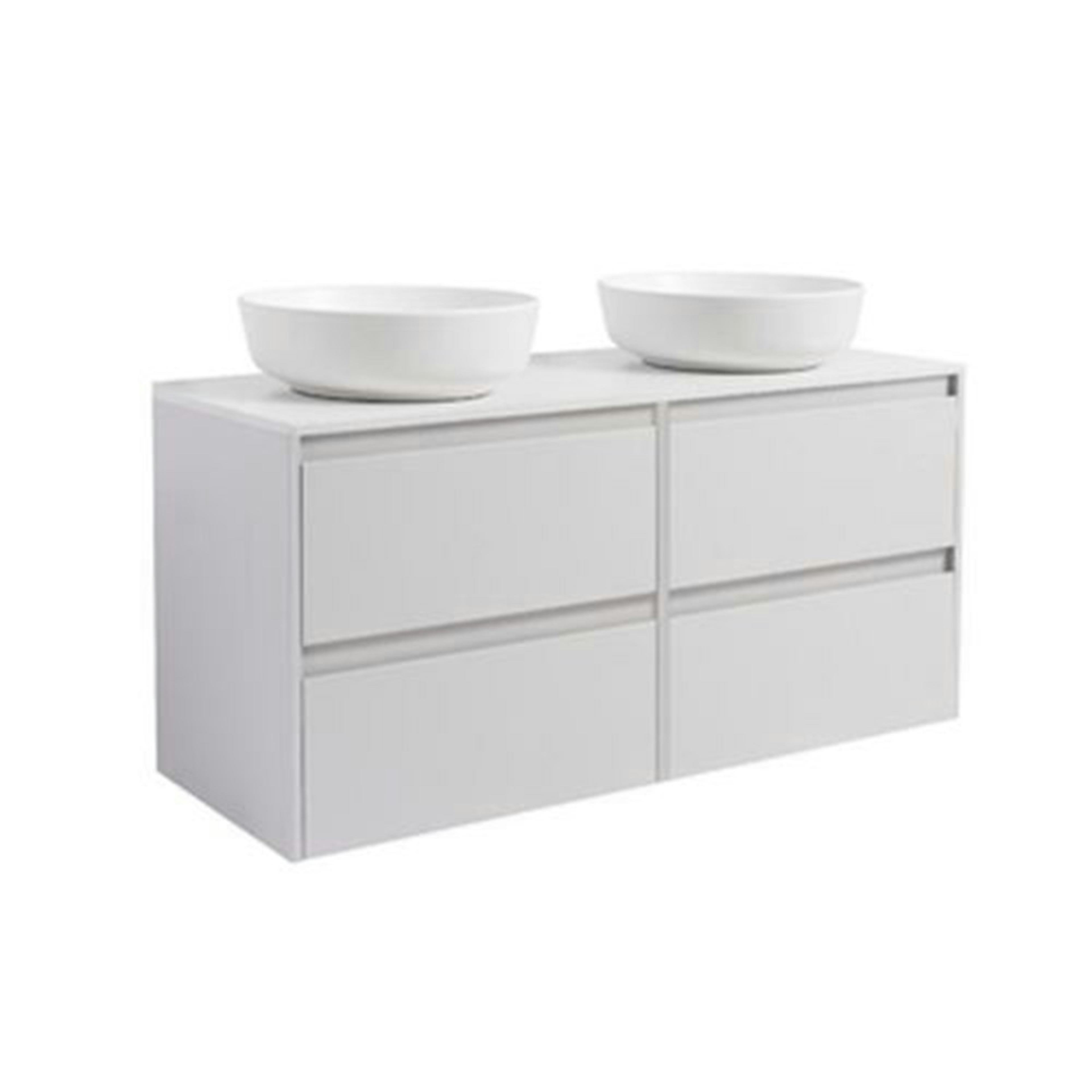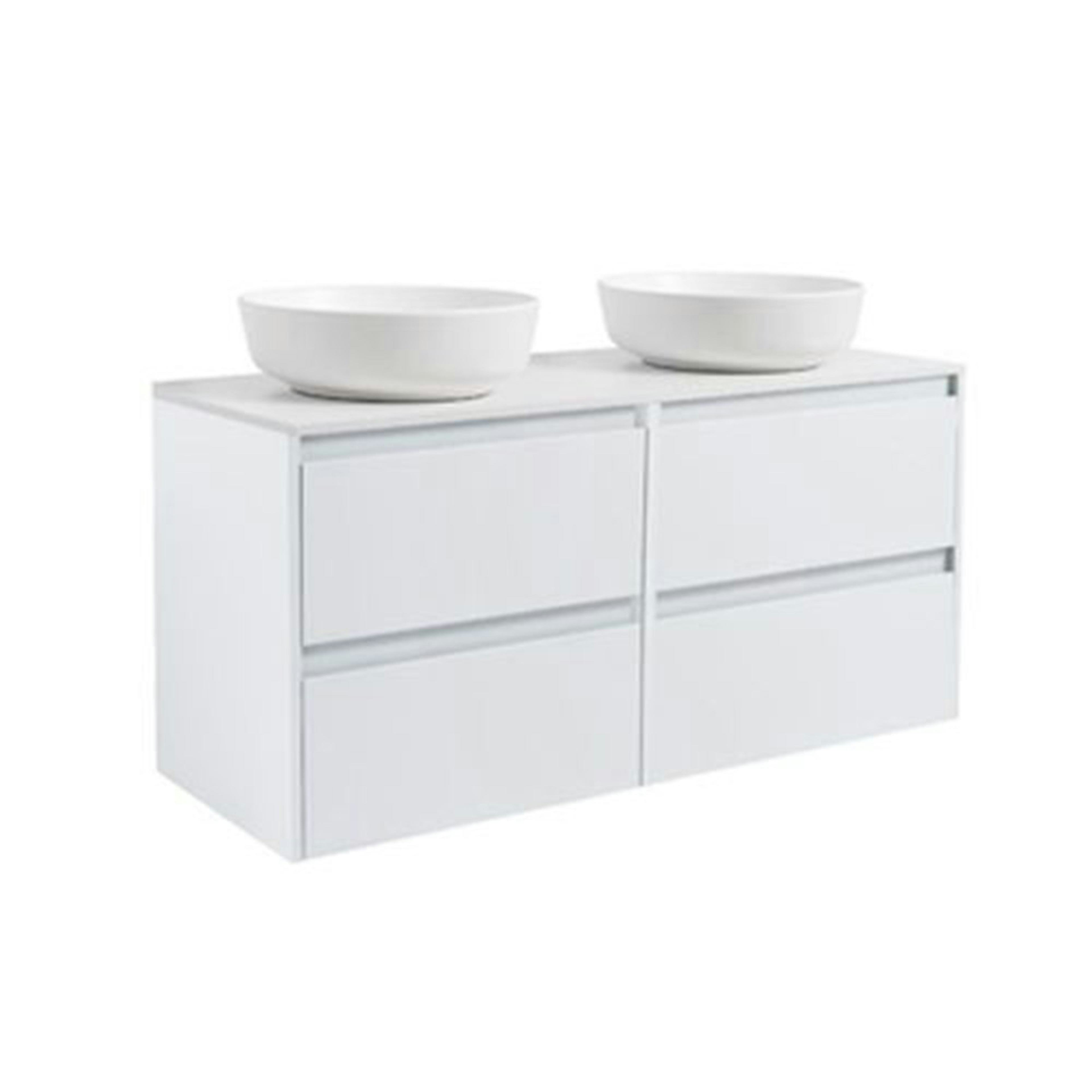 Luxor 120 Dubbelt med Bänkskiva Kvartskomposit och Runt Tvättställ