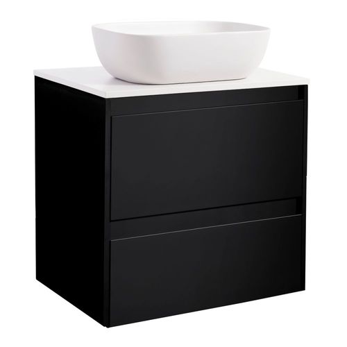 Färg Tvättställsskåpet: Matt Svart, Färg Bänkskiva: Vit, Färg Tvättställ: Svart - B: 606 mm, H: 737 mm, D: 470 mm17 299 kr