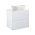 Tvättställsskåp Alterna Luxor med bänkskiva kvartskomposit och rektangulärt tvättställ. Bänkskivan är gjord av kvartskomposit och tvättställ i porslin, 455x325x135 mm. Underskåpen har mjukstängande lådor. Handtag och blandare beställs separat.