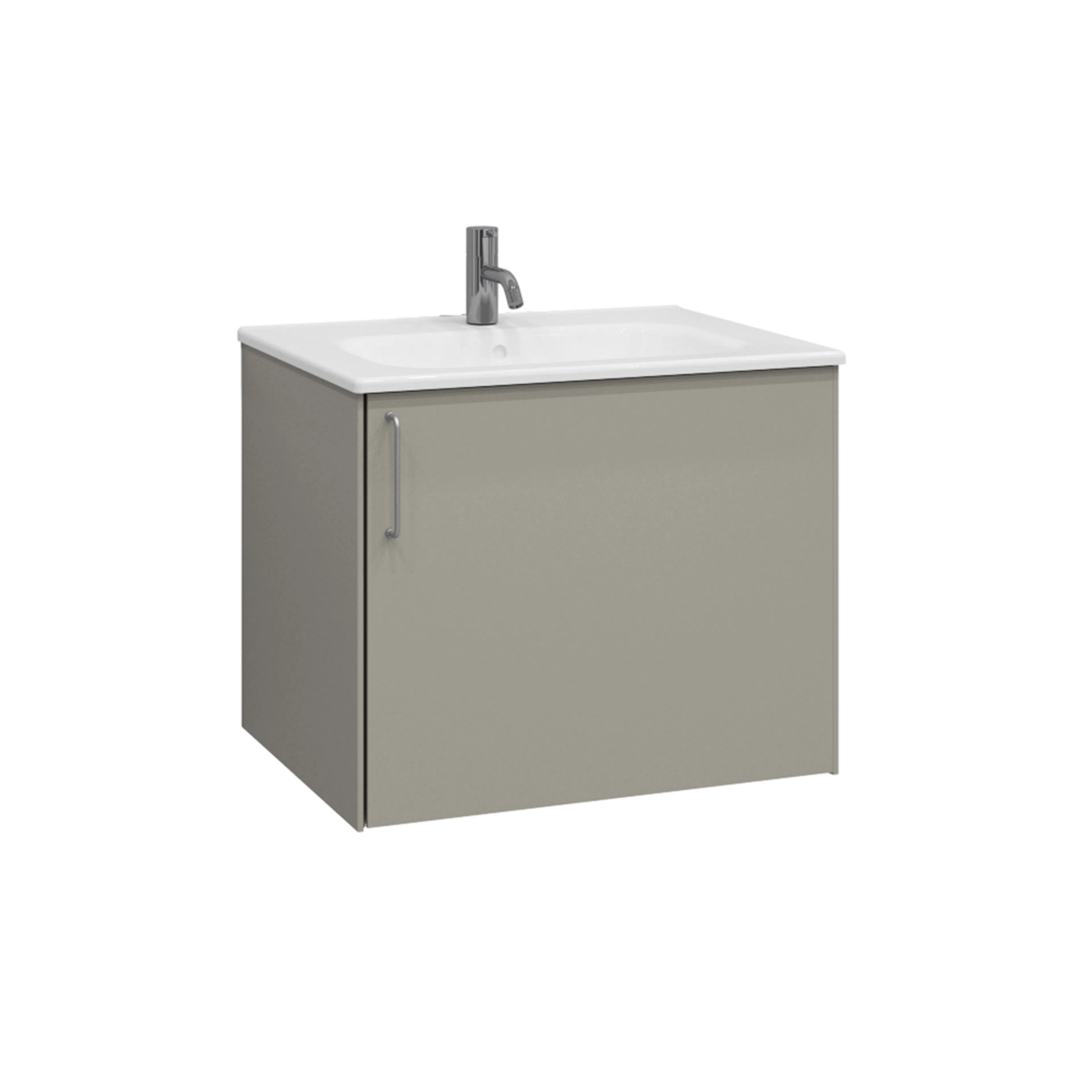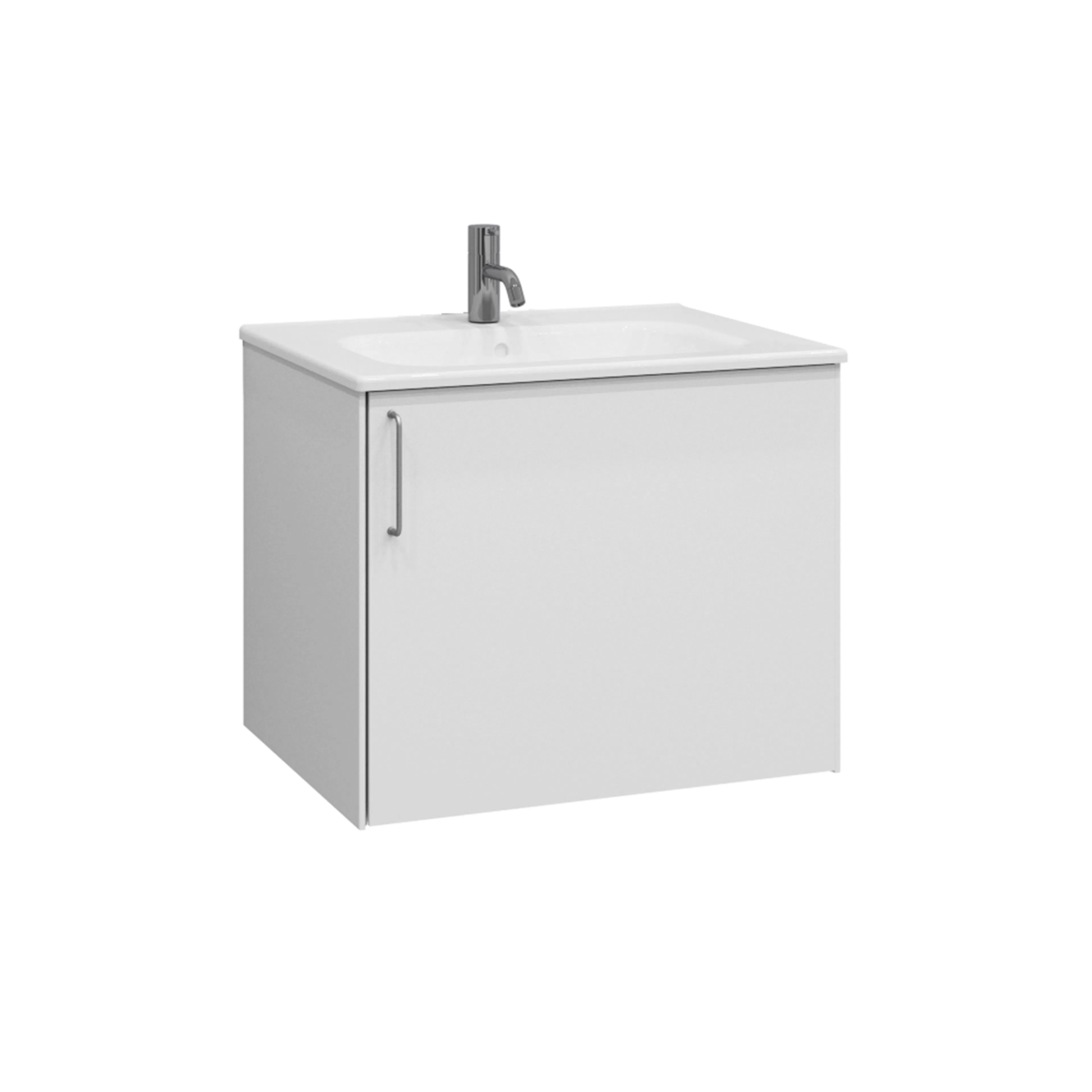 Tvättställsskåp Ballingslöv KA60 Lessmore med en mjukstängande lucka och en invändig hylla. Möbeln kan monteras vägghängd eller med tunna benstativ i stål som tillval. Insidan är försedd med ett praktiskt hyllplan och kan utrustas med en smart förvaring med en plåthylla på luckans insida. Tvättstället Thin i porslin rekommenderas.