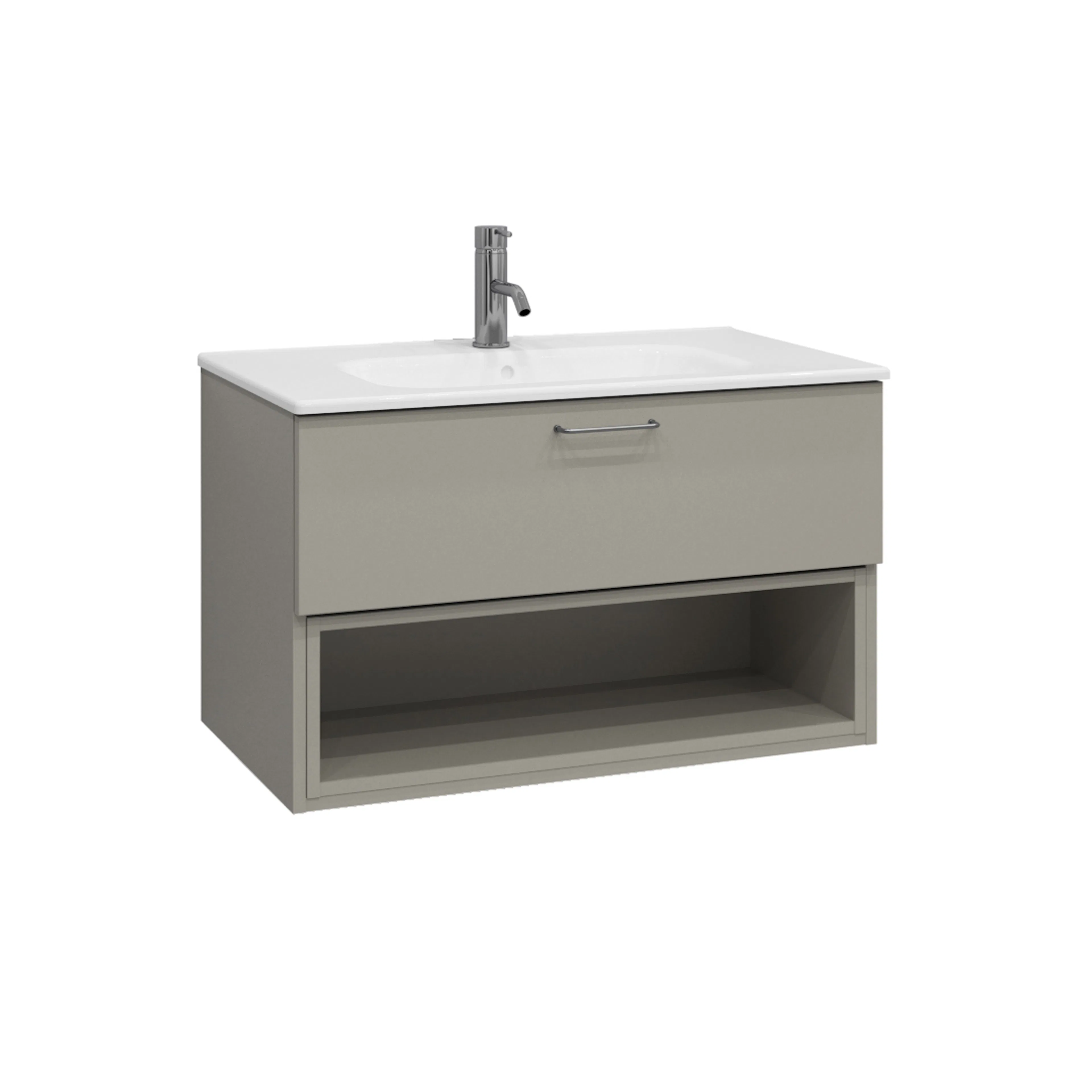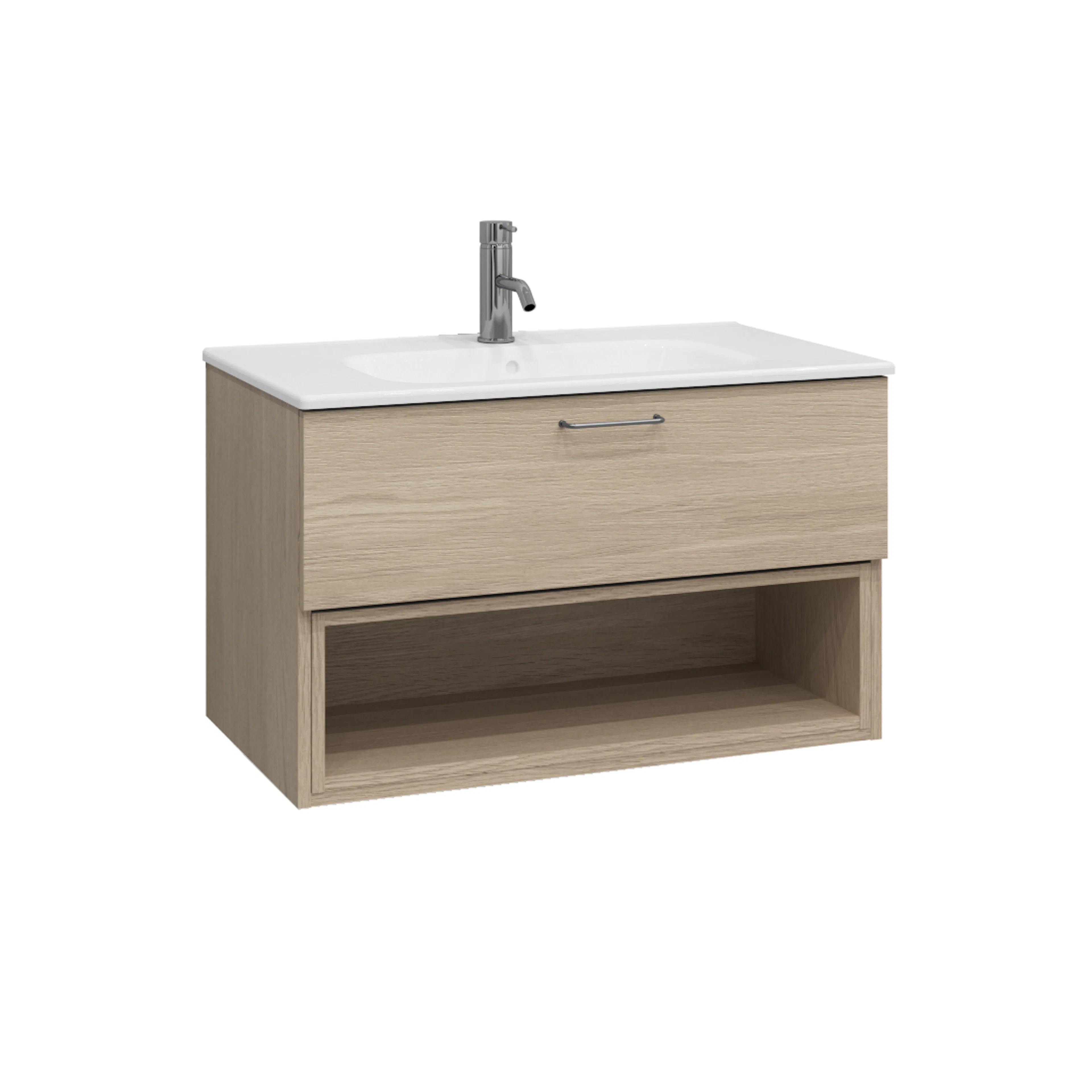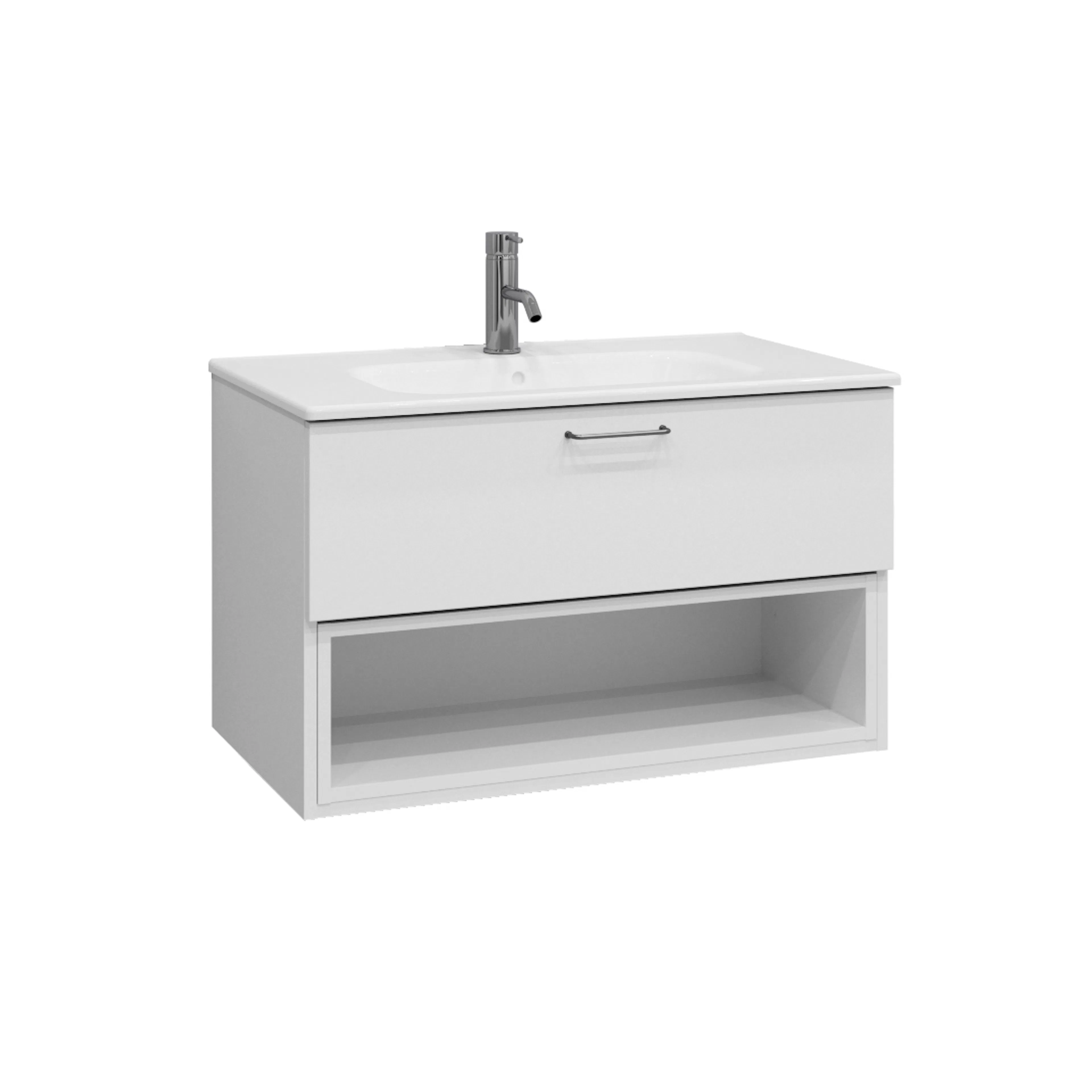 Tvättställsskåp Ballingslöv KO80 Bright är ett stilrent tvättställsskåp med en välplanerad låda samt en öppen hylla nedtill.