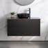 I vitt och ekutförande ingår bänkskiva i vit Carraramarmor. I svart och brun ek ingår bänkskiva i svart granitkeramik. Skåpet ger snygg och smart förvaring i de två lådorna som är mjukstängande. Lådorna har så kallad push-open funktion, vilket innebär att man öppnar lådorna genom ett tryck på utsidan. Tvättställsskåpet har batteridriven lådbelysning (AAA-batterier, ingår ej) och även eluttag (230 V).