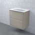 Stommen är tillverkad av fukttrögt skivmaterial och skåpet levereras färdigmonterat och transportförpackat från fabrik. Komplettera din möbel med tvättställ, blandare, handtag, eluttag, extra lådindelare och ben. Du kan välja mellan olika heltäckande tvättställ, ovanpåliggande tvättställ med medföljande bänkskiva eller en bänkskiva med ett underlimmat porslinstvättställ, allt efter eget tycke och smak.