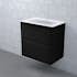 Tvättställsskåp Mejda Kompakt Hög från Björbo Badrum är en modern kommod med en inramande stomme som levereras utan tvättställ och blandare. Detta lite grundare skåp har djupa och mycket stabila fullutdragslådor i svartbetsat trä med mjukstängning och självindrag. Det levereras med vattenlås, lådindelare i svartbetsat trä och lådmattor.